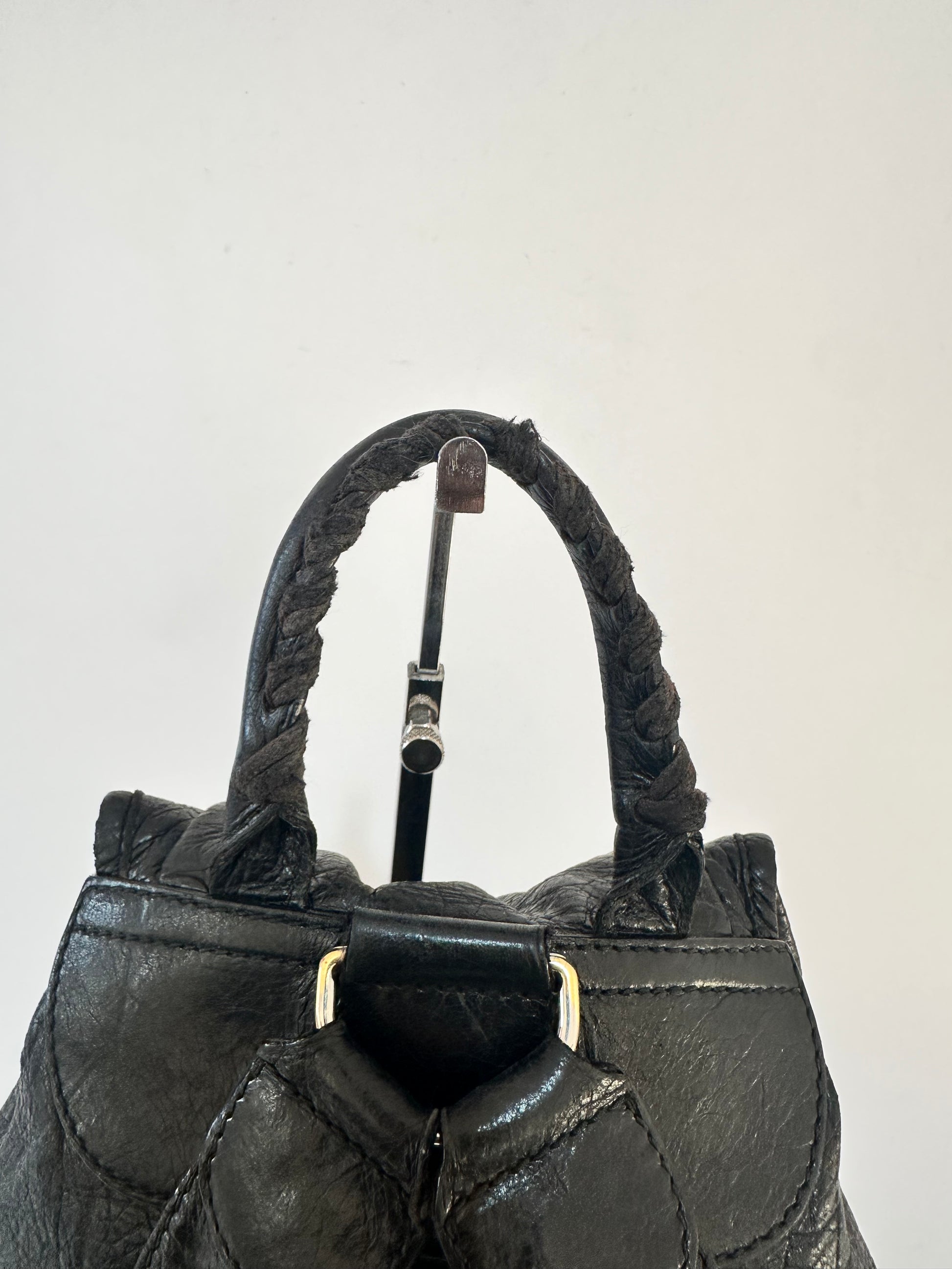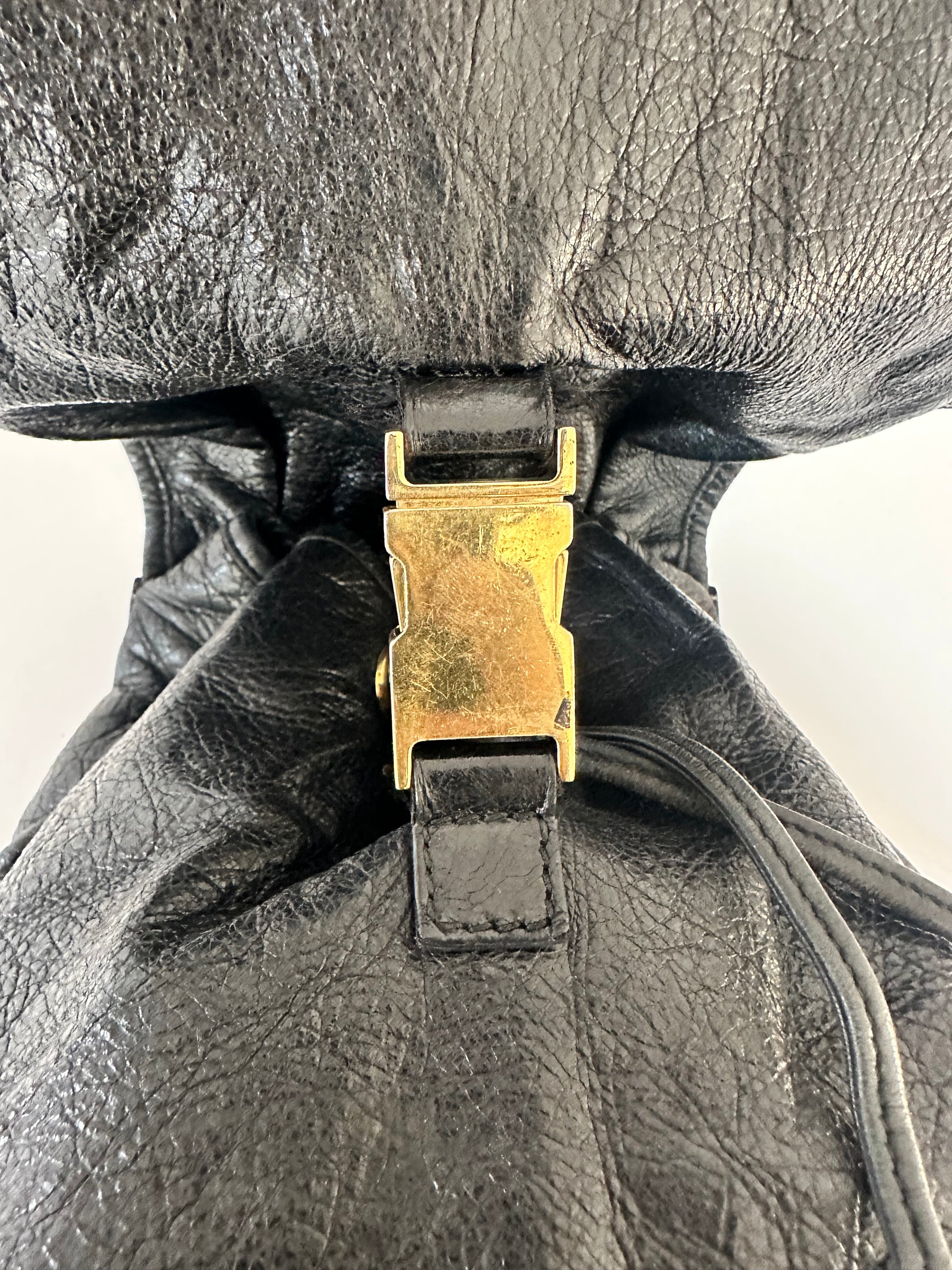 BALENCIAGA Black Lambskin Leather Giant 12 Silver Traveller S Backpack Bag