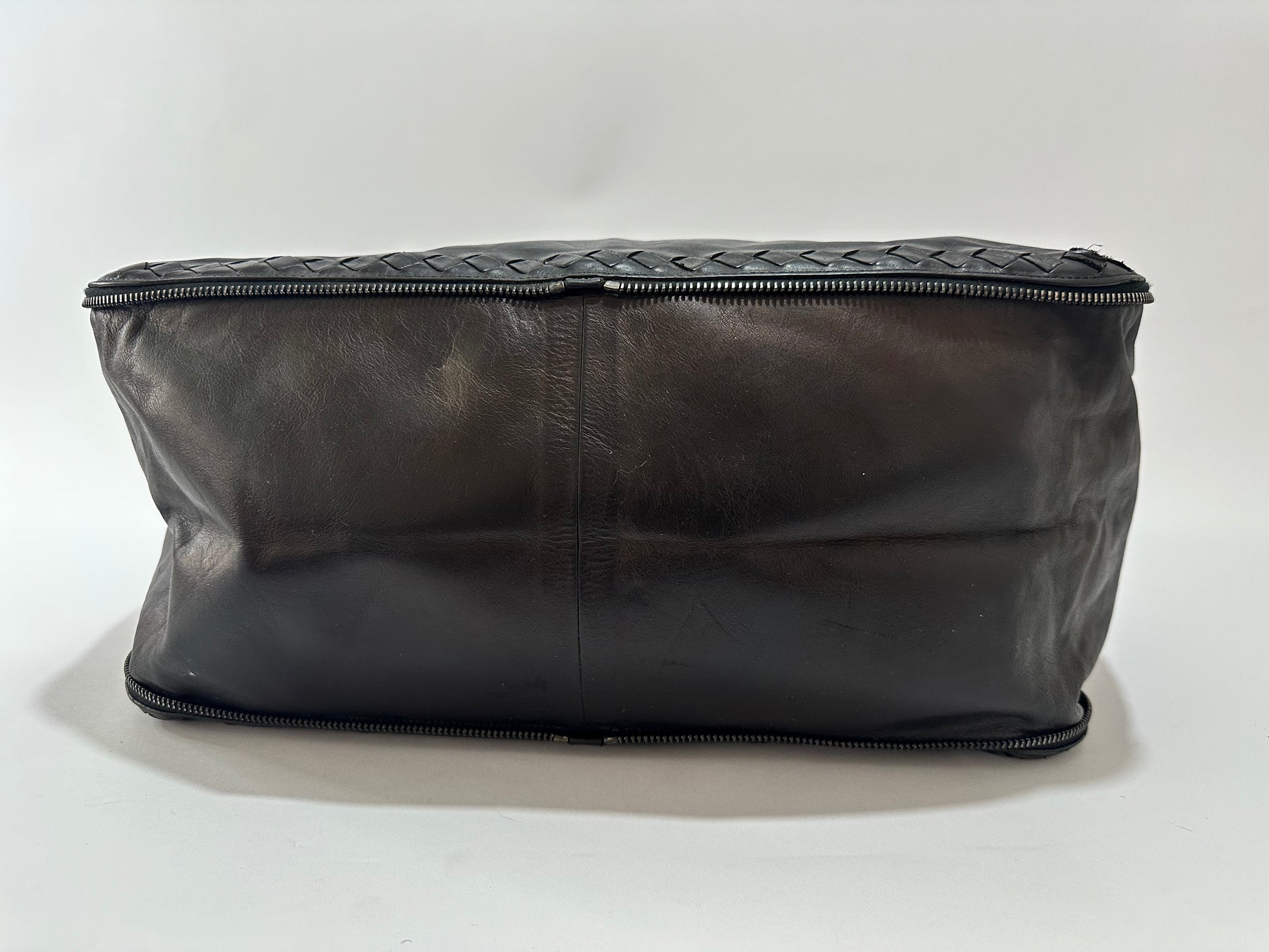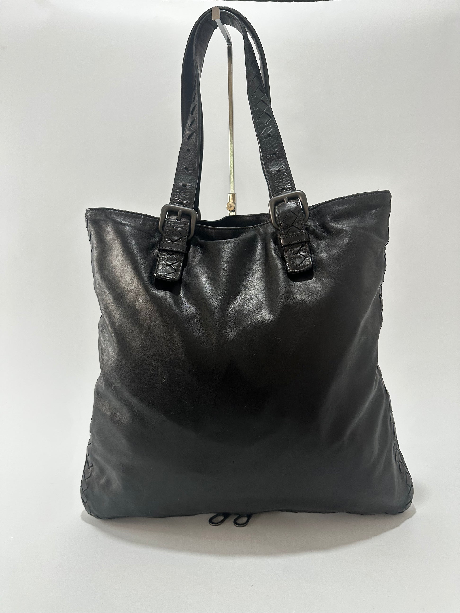 Bottega Veneta Black Intrecciato Trim Leather Expandable Tote