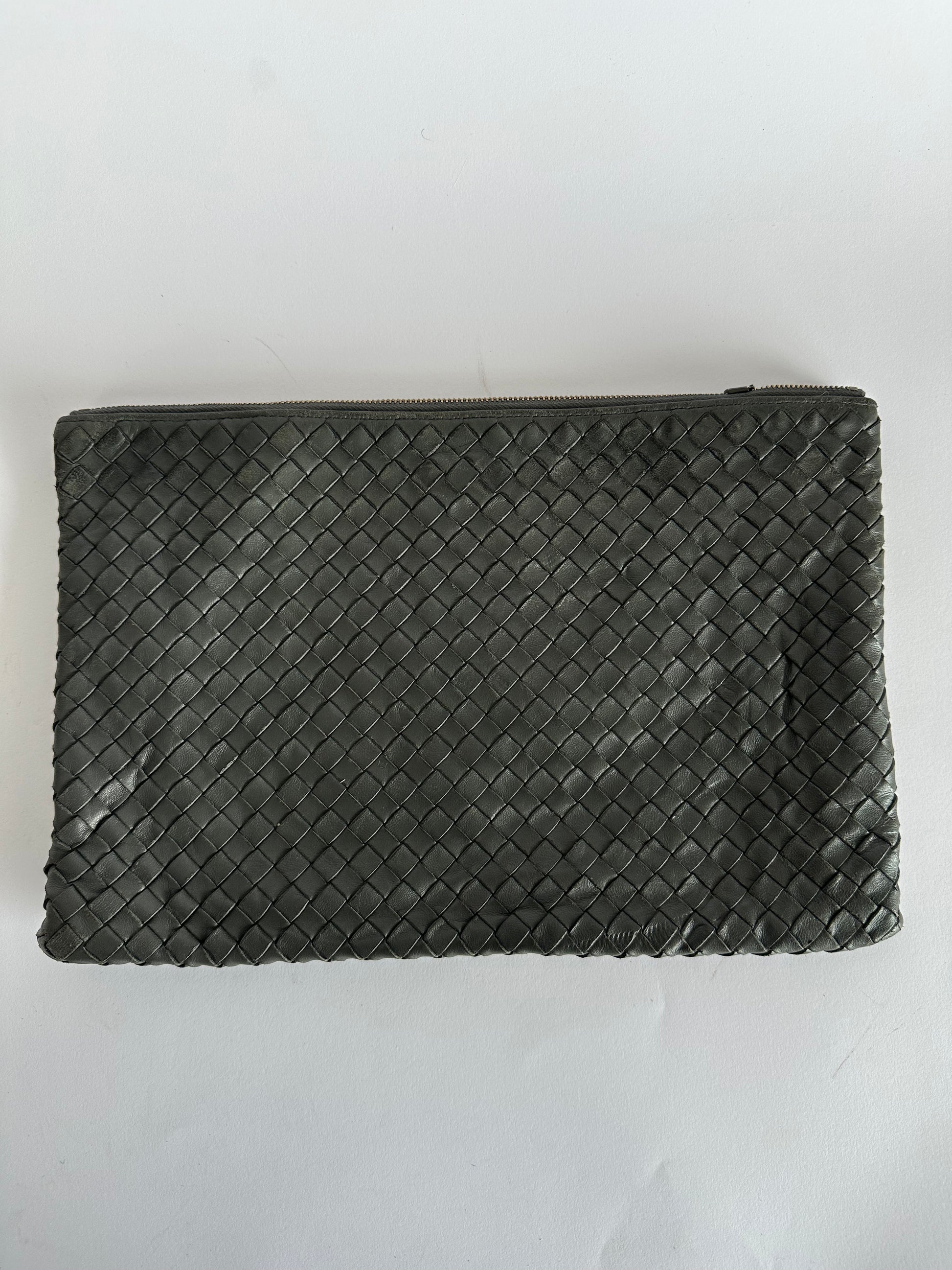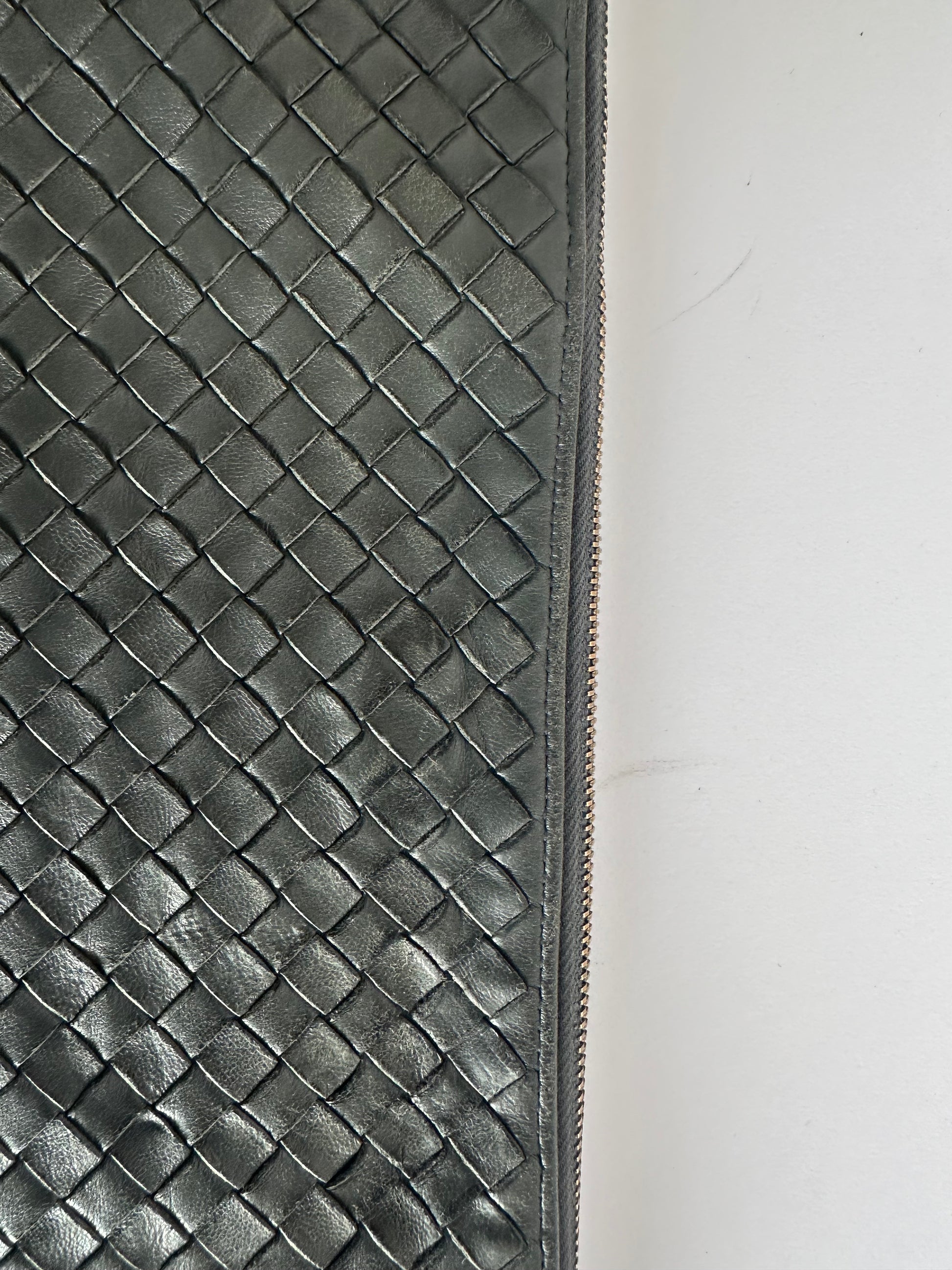 BOTTEGA VENETA Nappa Intrecciato Flat Zip Biletto Pouch Light Grey