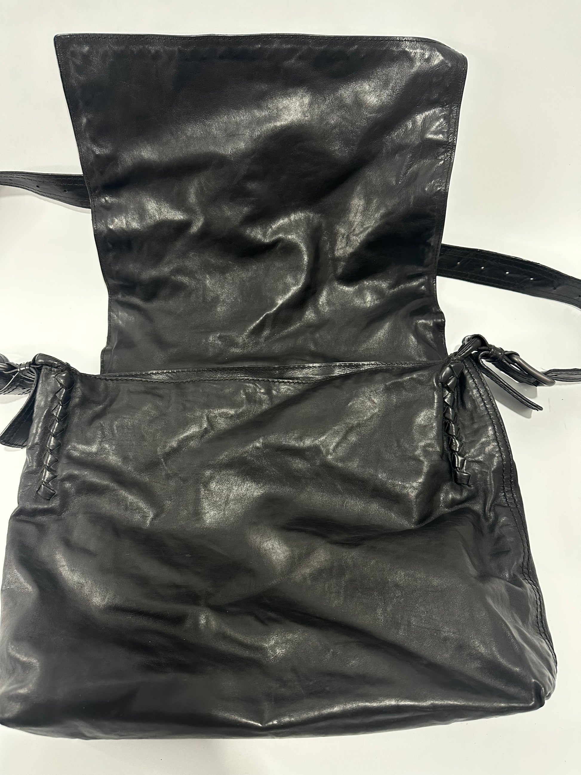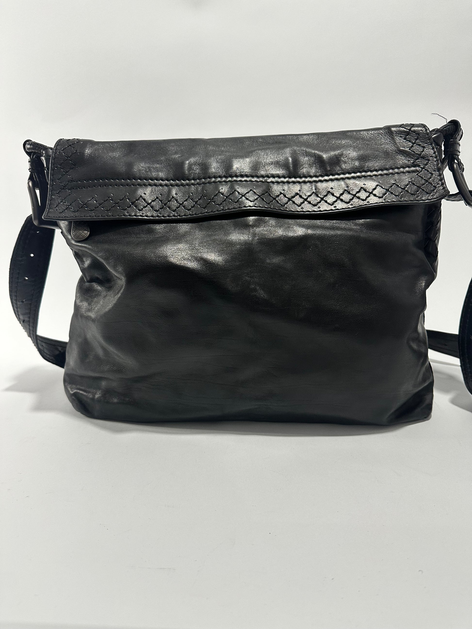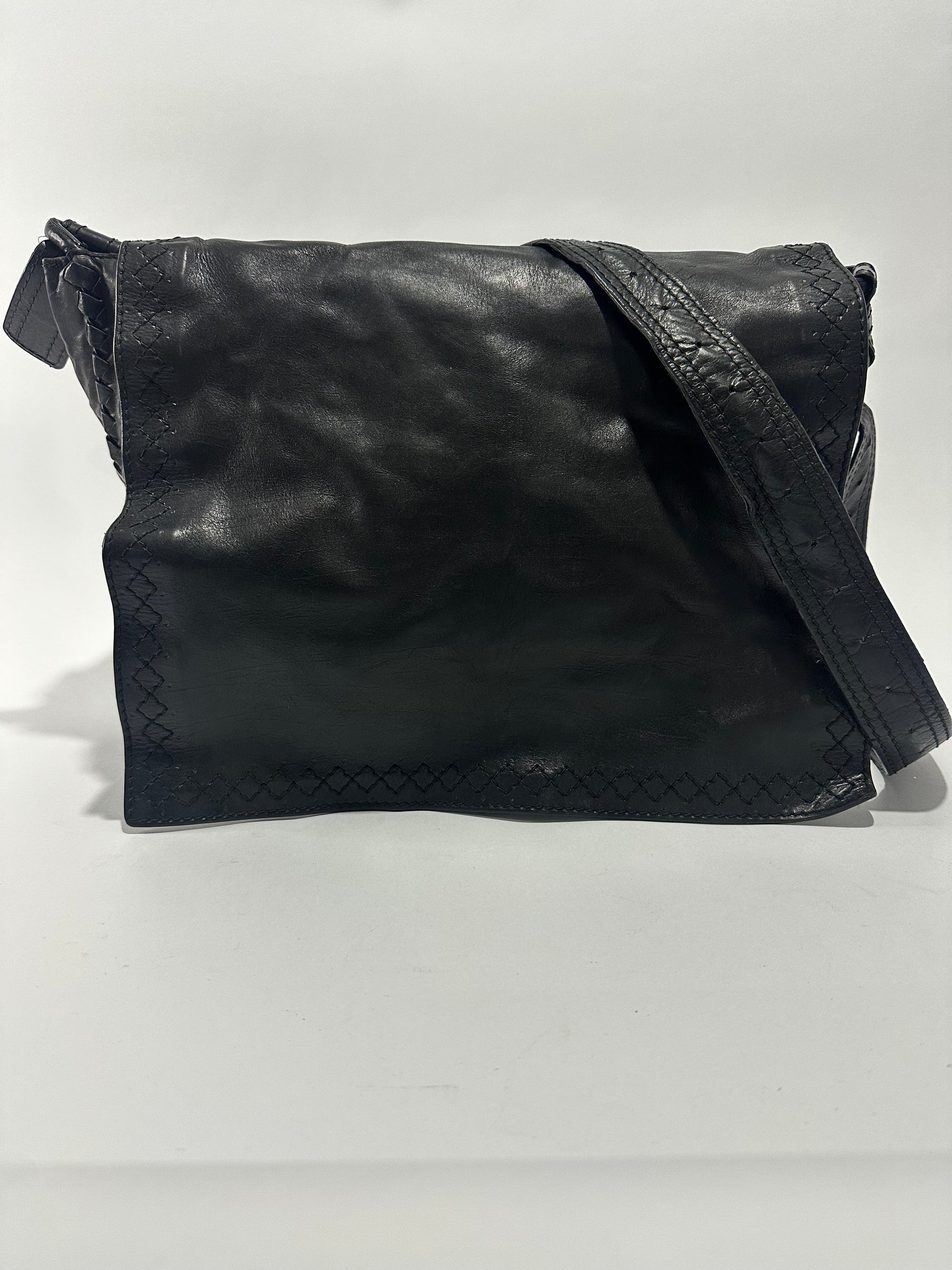 Bottega Veneta Black Leather Square Flap Messenger Bag