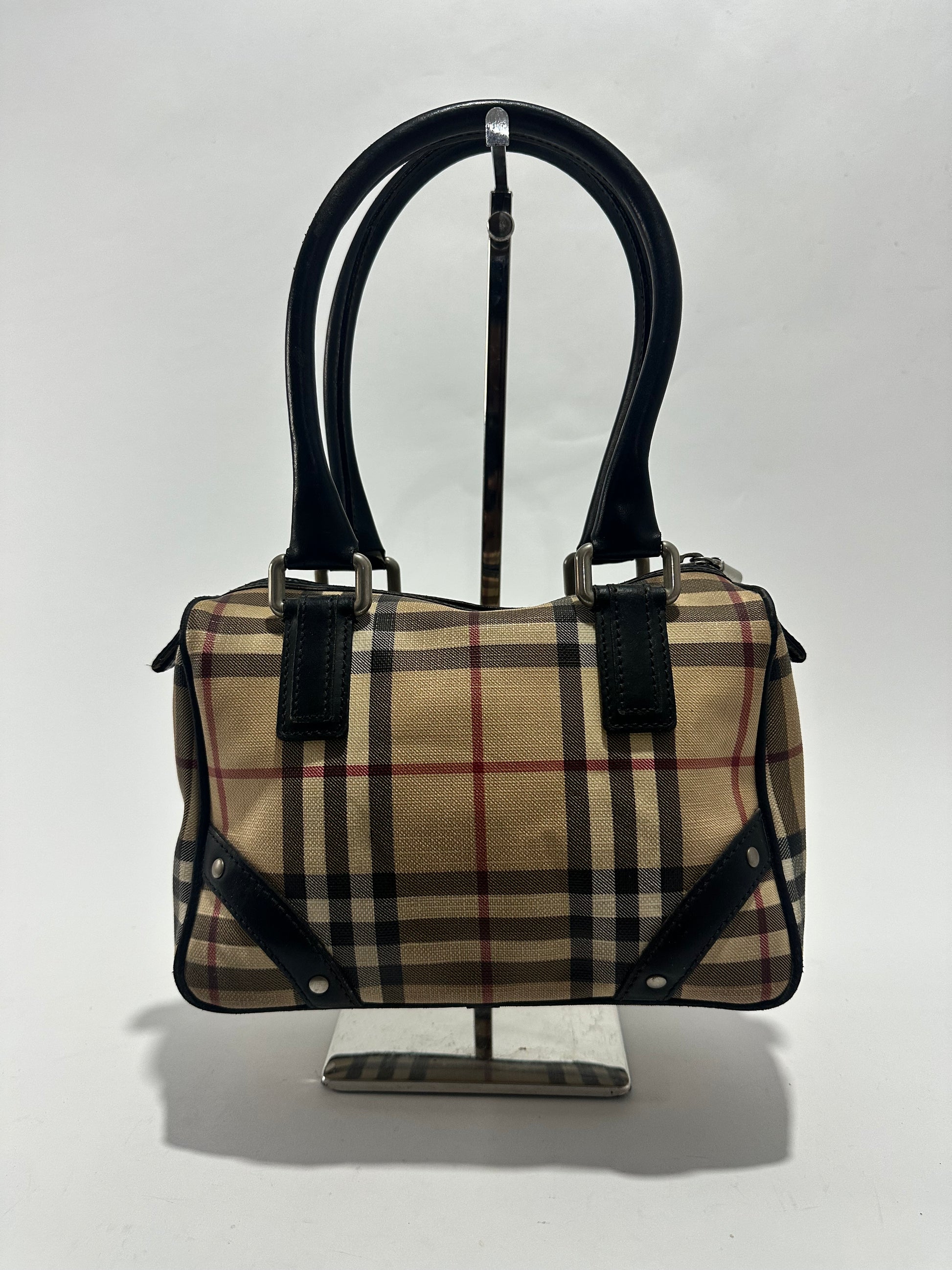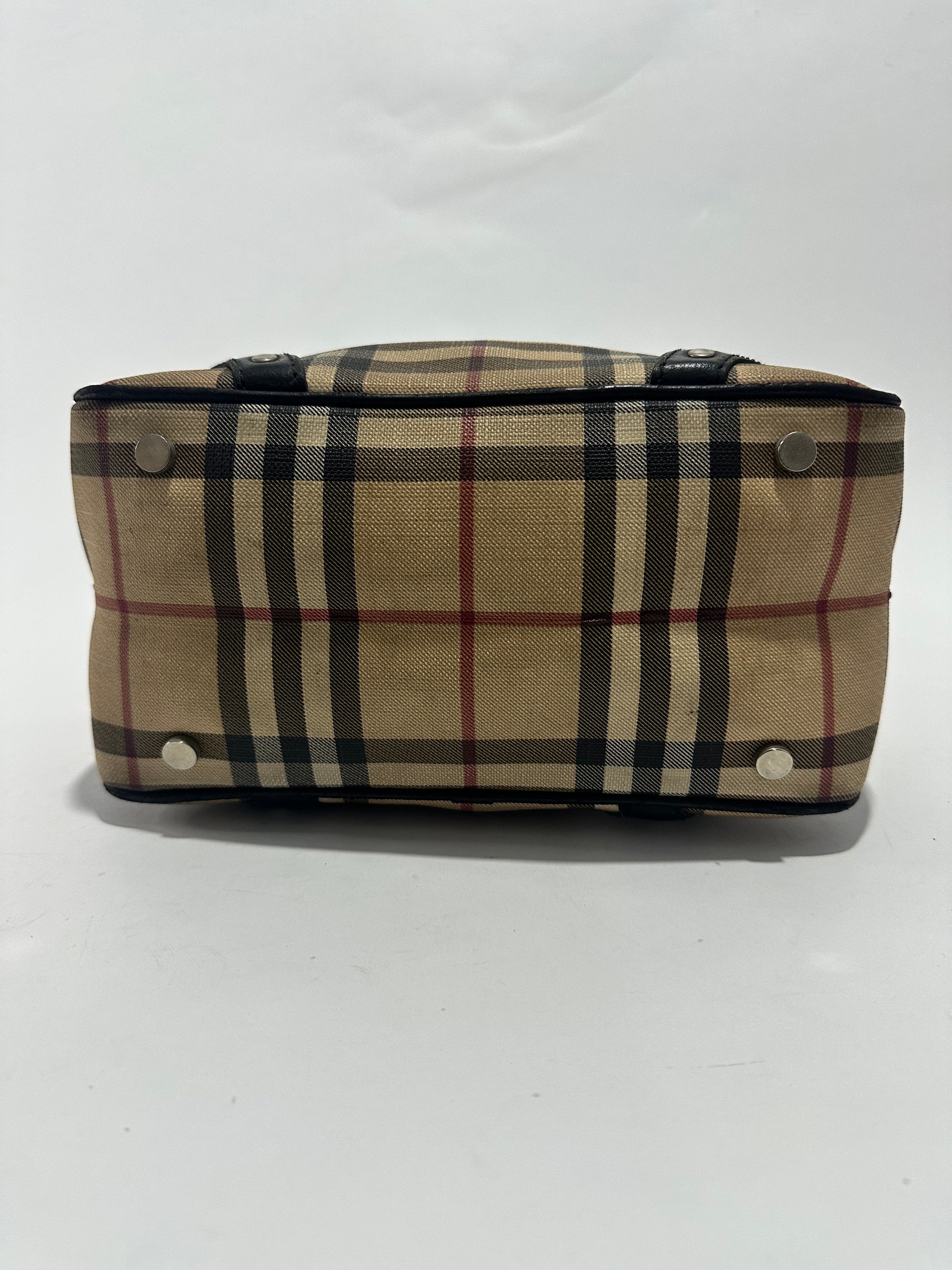 BURBERRY Beige Nova Check Coated Canvas Small Top Handle Bowling Bag