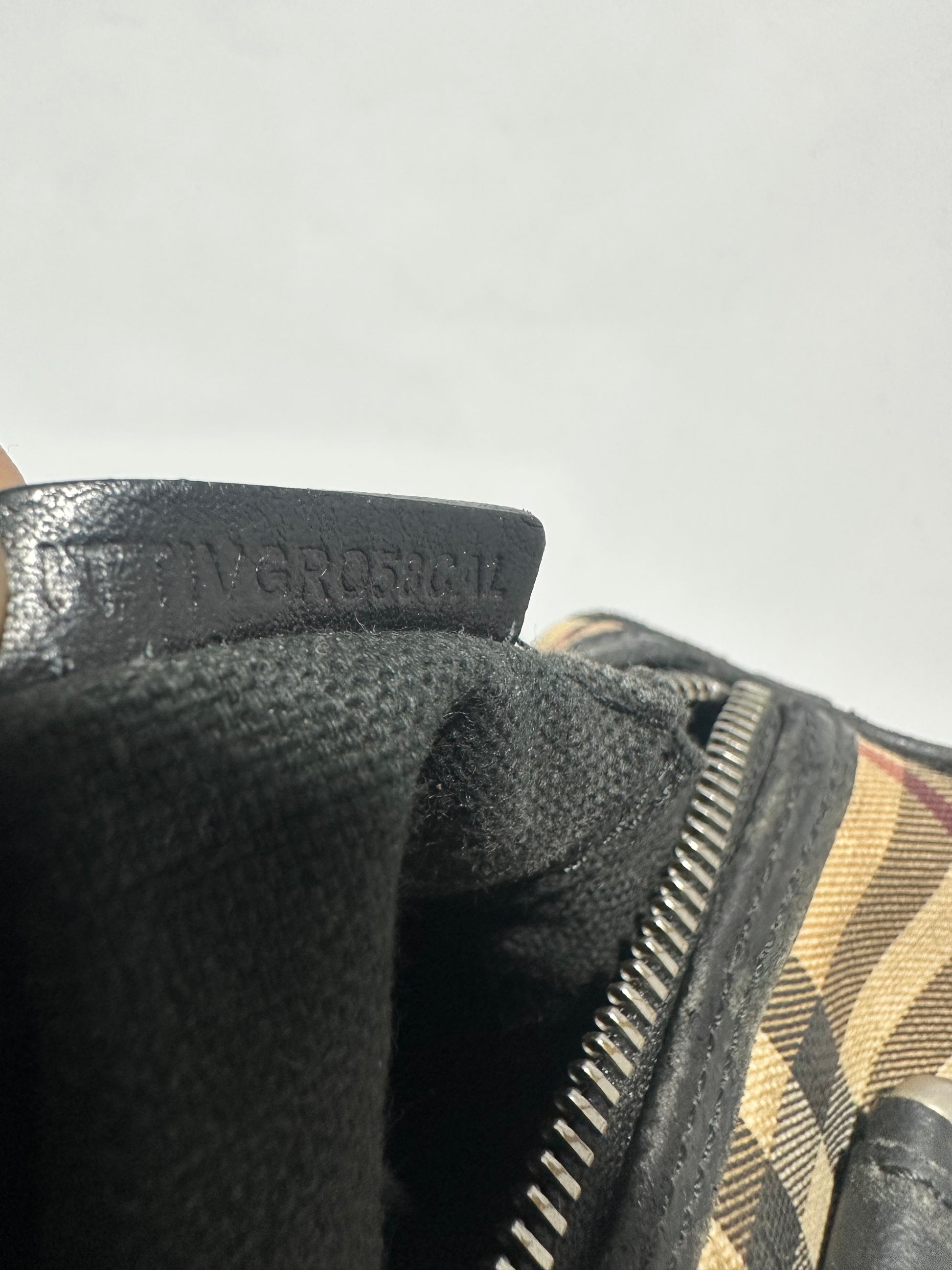 Spacious and captivating, this Chester Bowler bag is from Burberry. It has been crafted from their signature Haymarket Check coated canvas and accented with leather trims and gold-tone hardware. It is equipped with a well-sized canvas interior and two rolled handles.