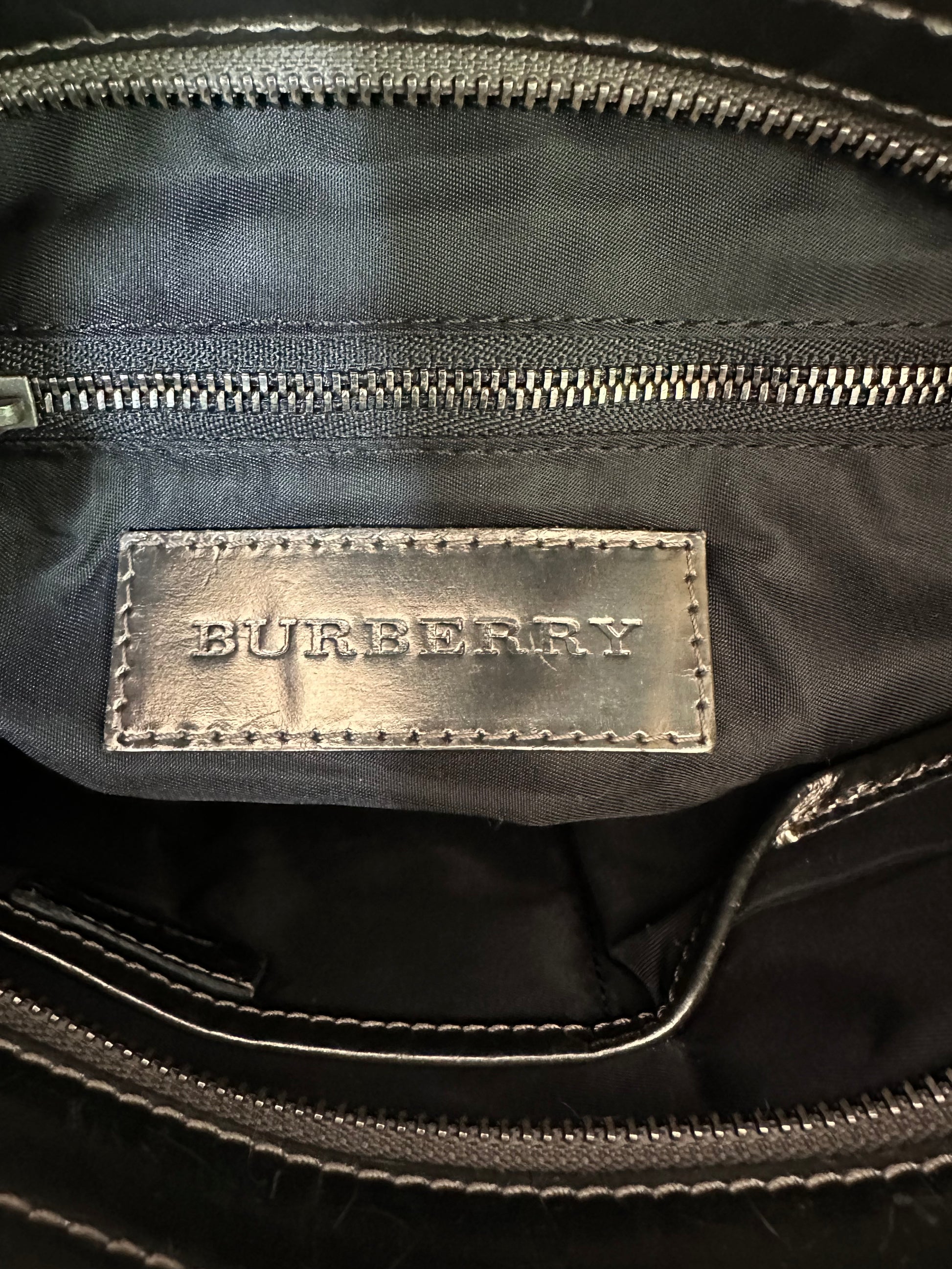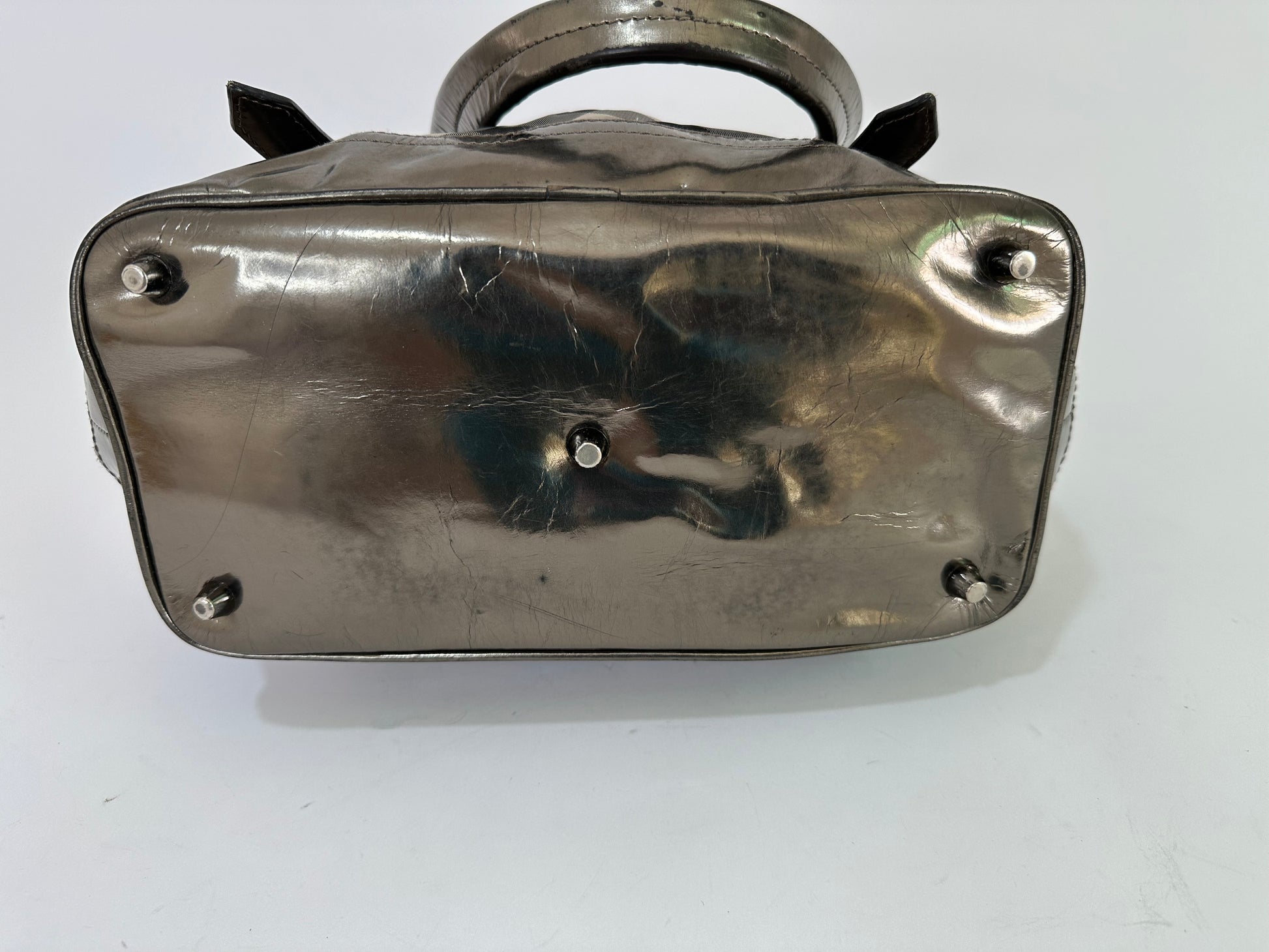 Some Visible discoloration around the metallic leather lining.
