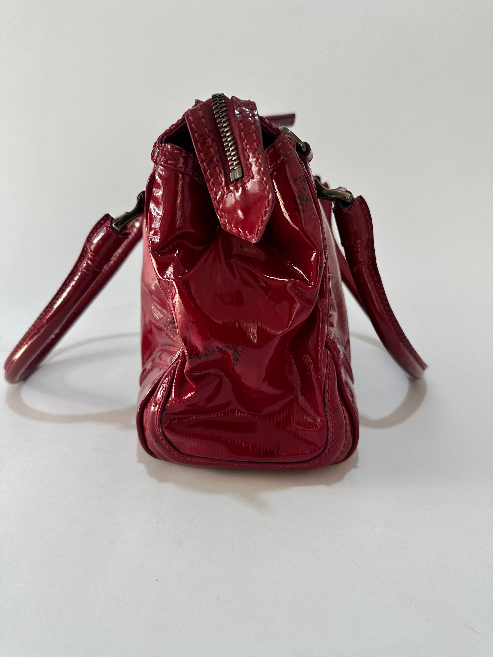 Burberry Fuchsia Check Embossed Patent Leather Satchel