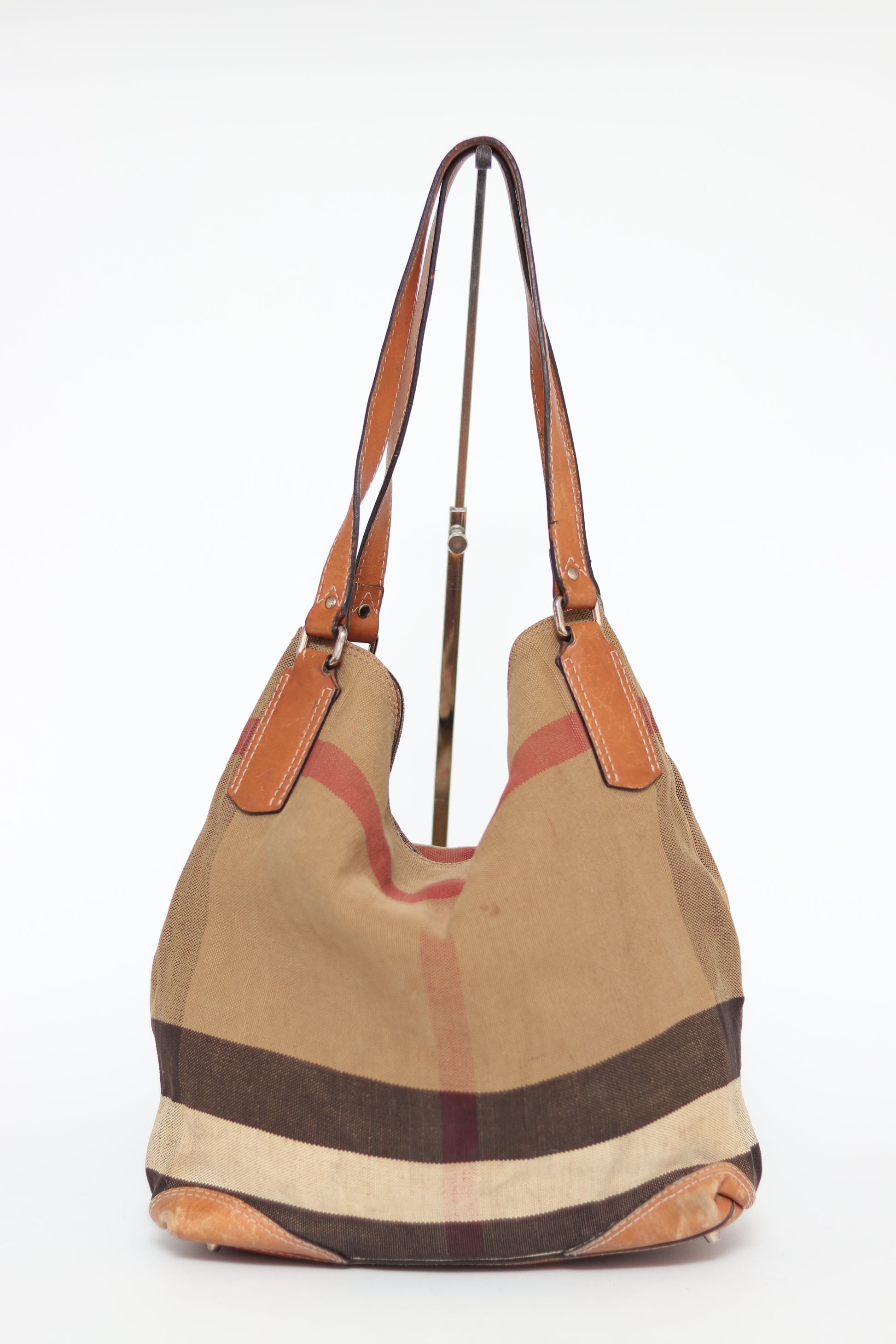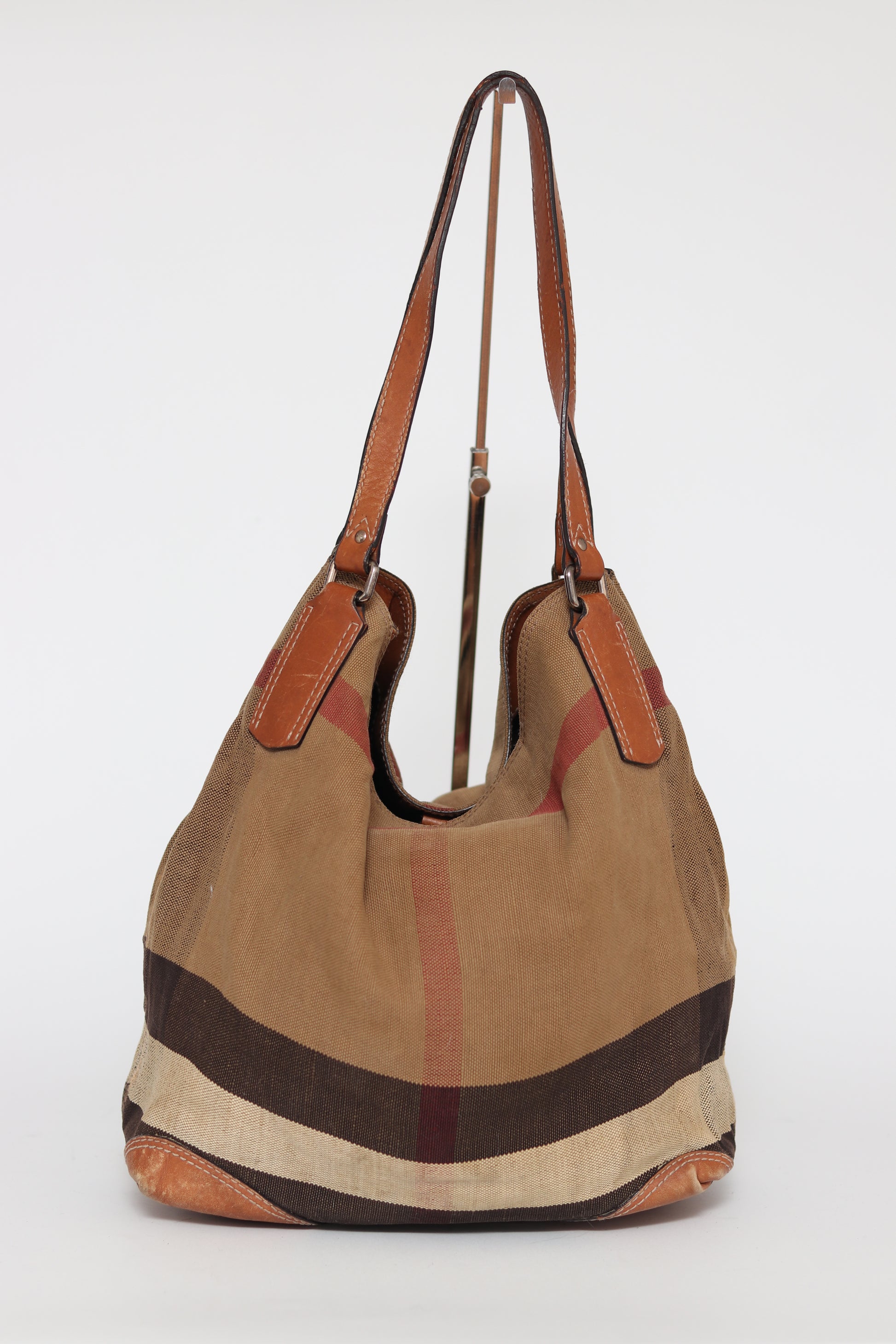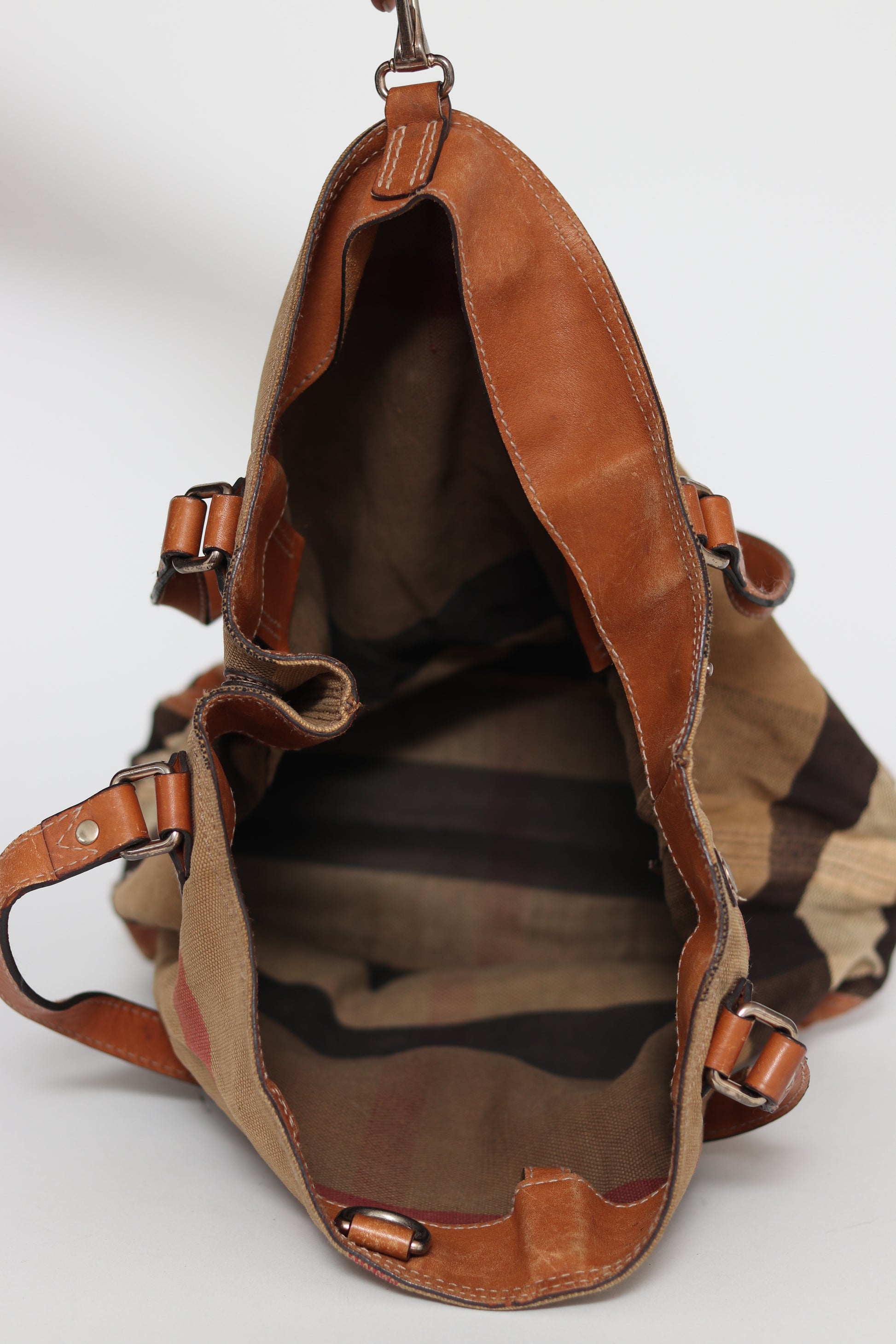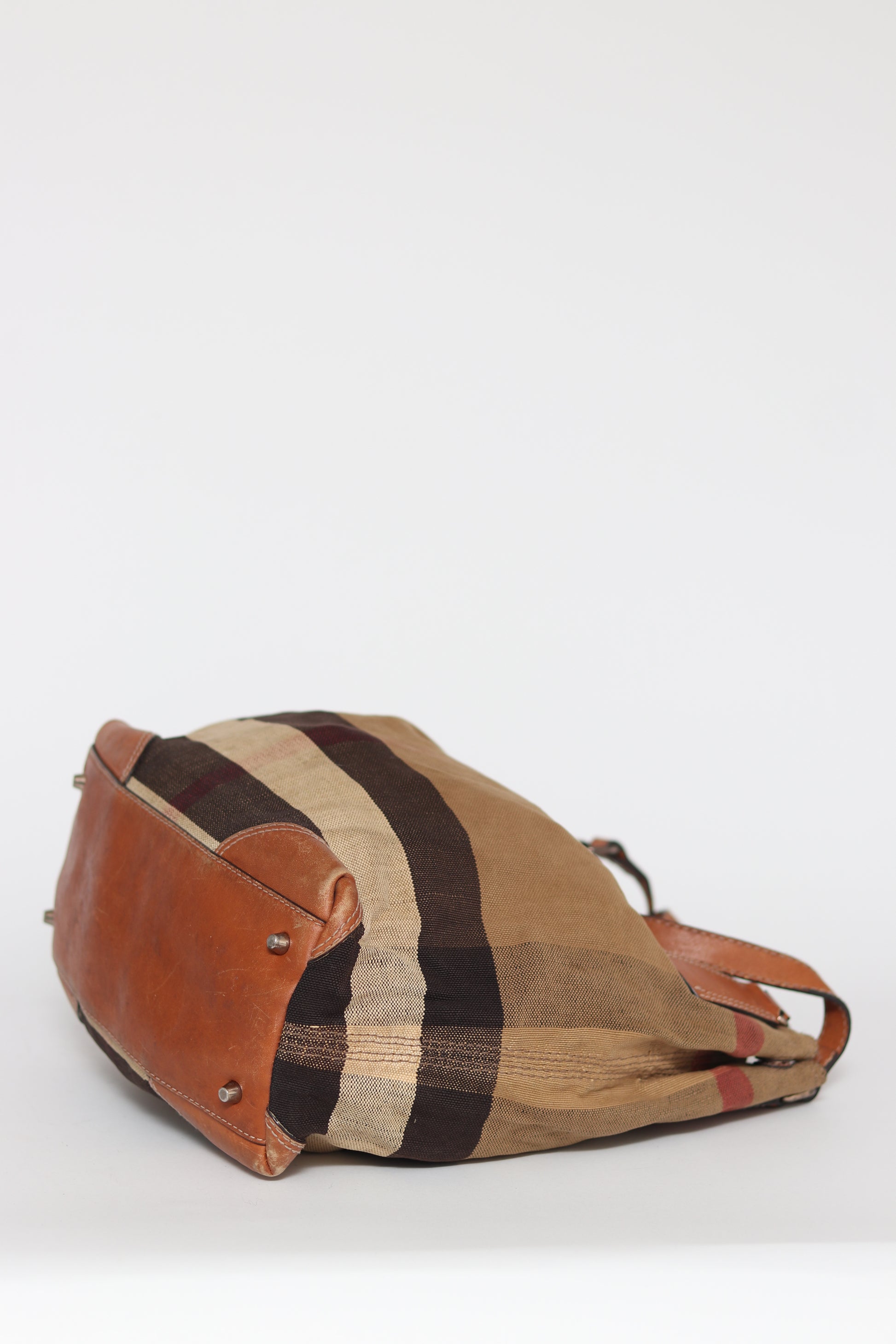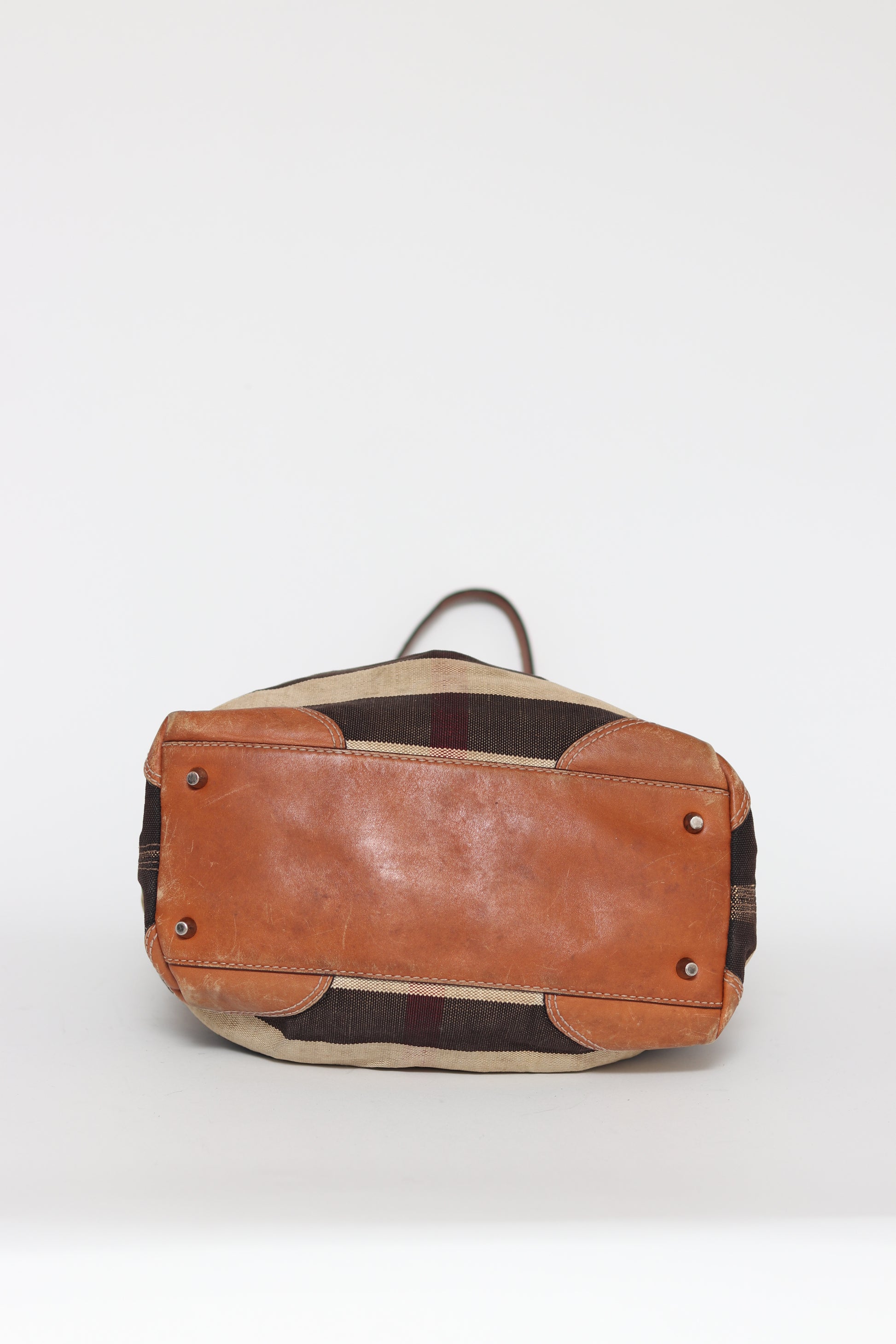 BURBERRY House Check Canvas Brown Leather Medium Maidstone Tote Bag
