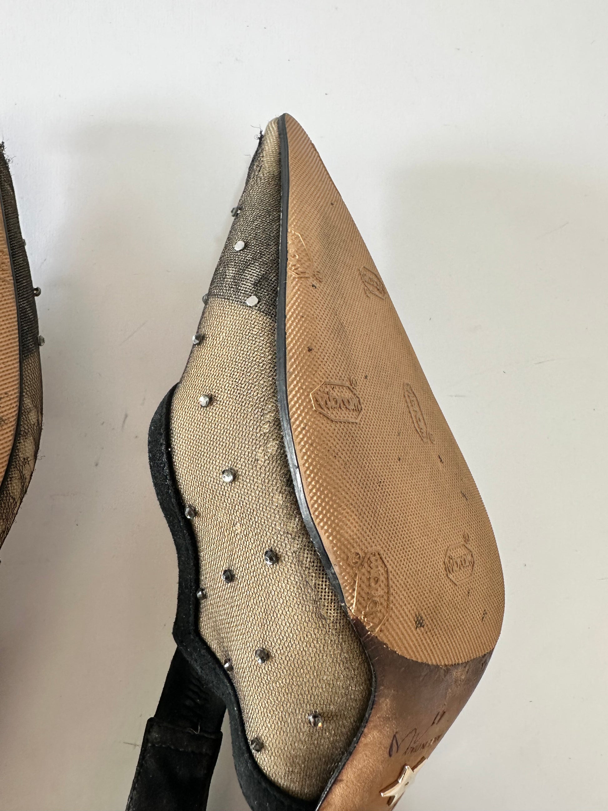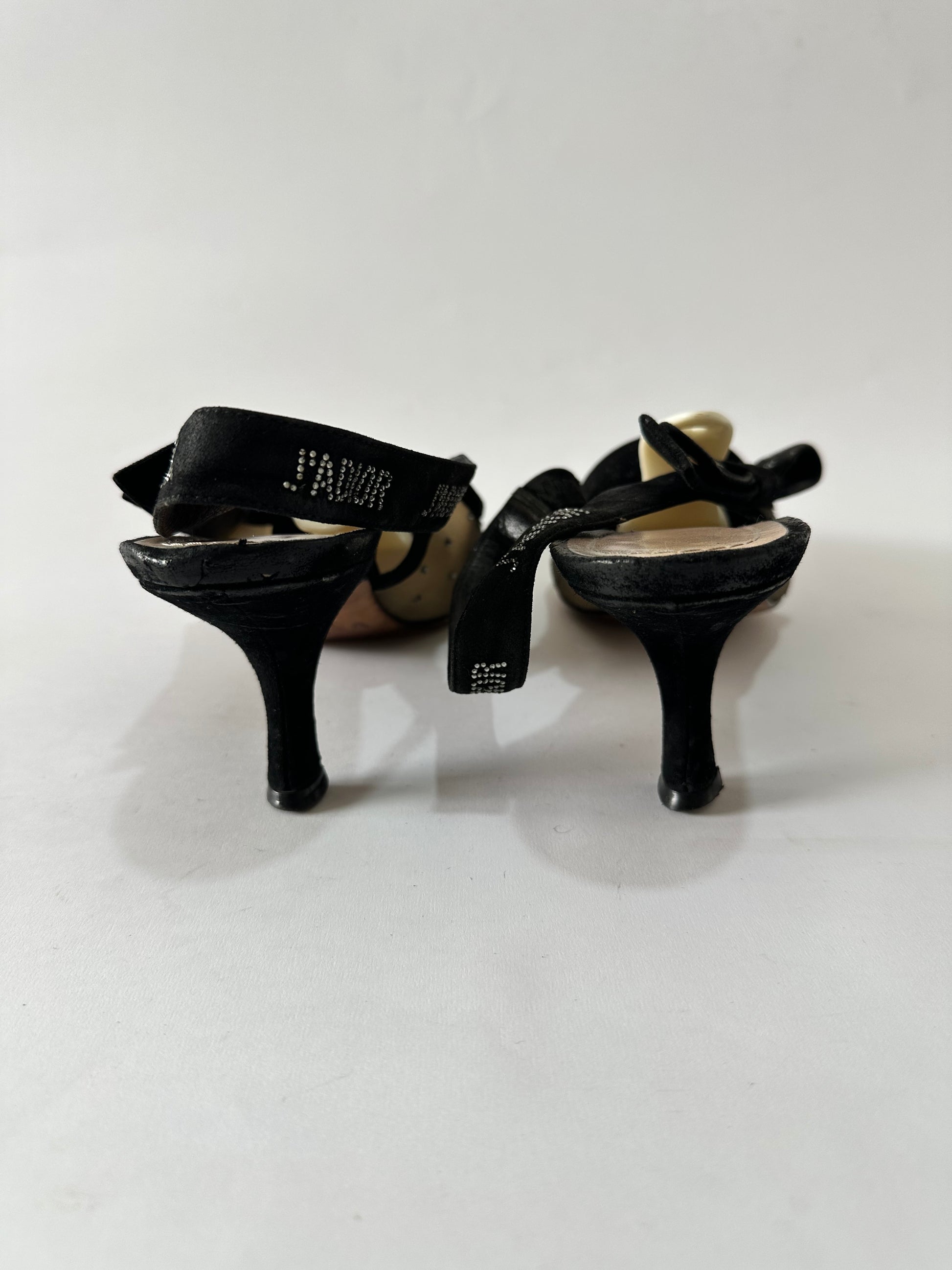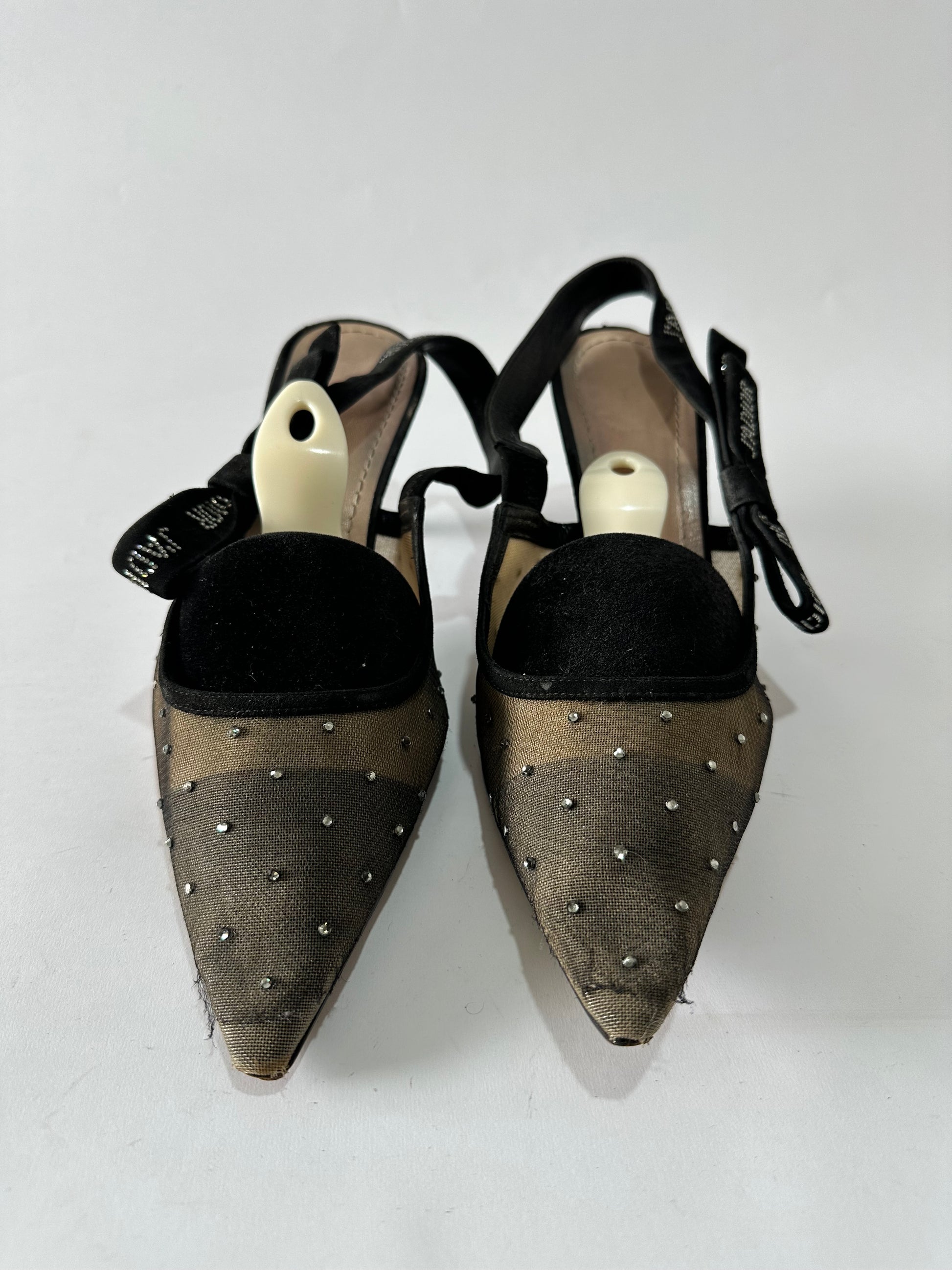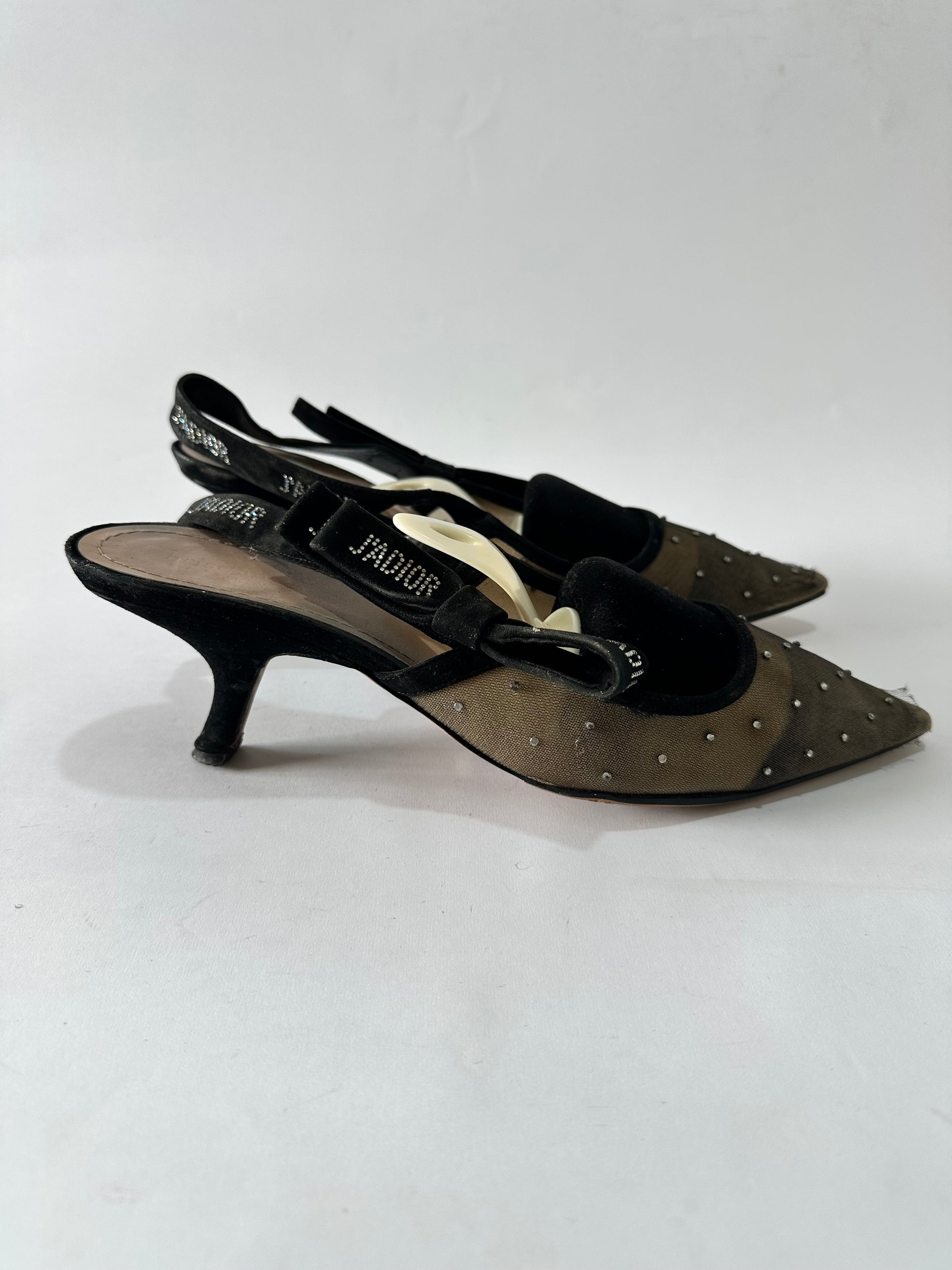 Christian Dior Mesh Suede Crystal J'Adior Slingback 100mm Pumps 41 Black