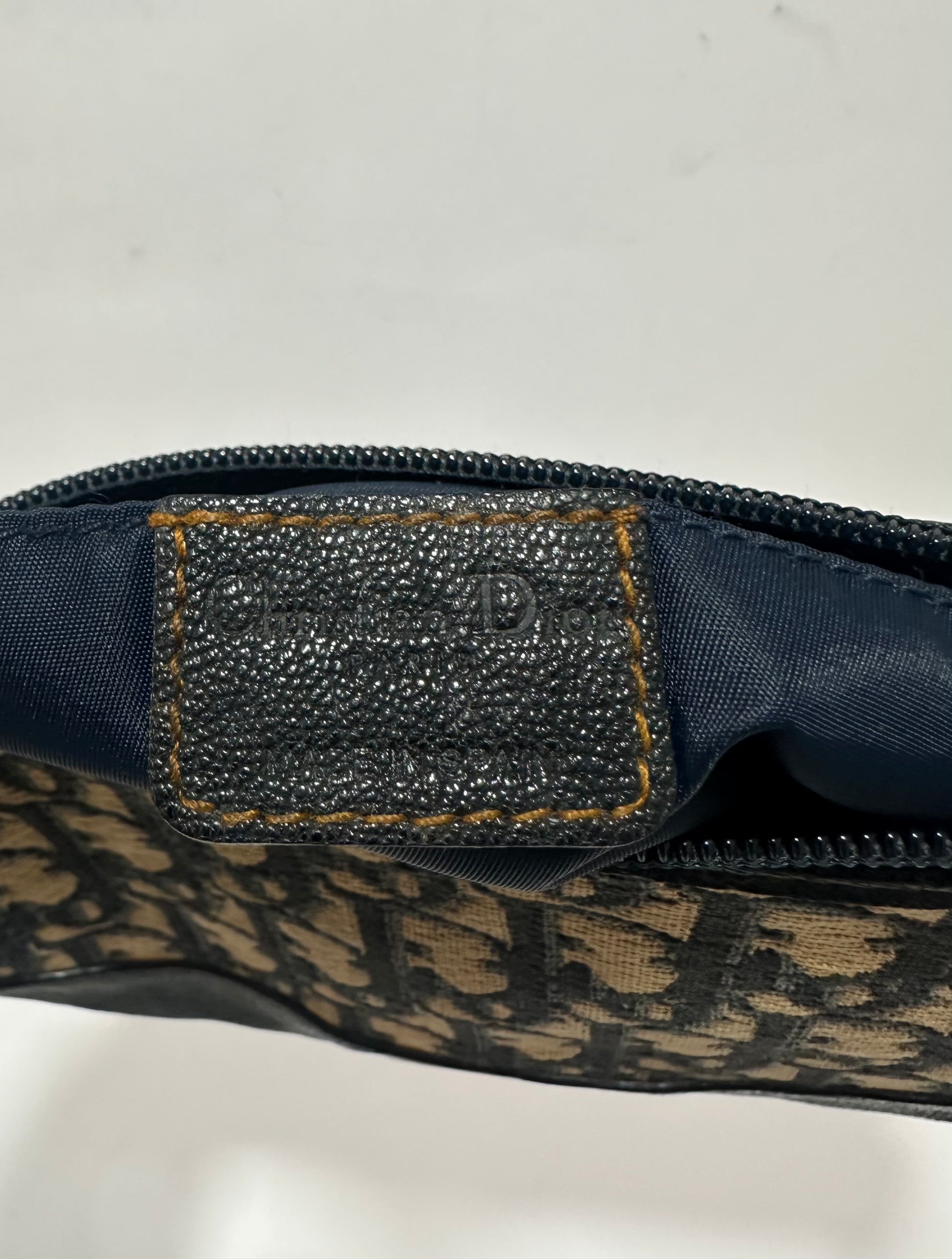 Dior Navy Blue Oblique Canvas and Leather Baguette Bag