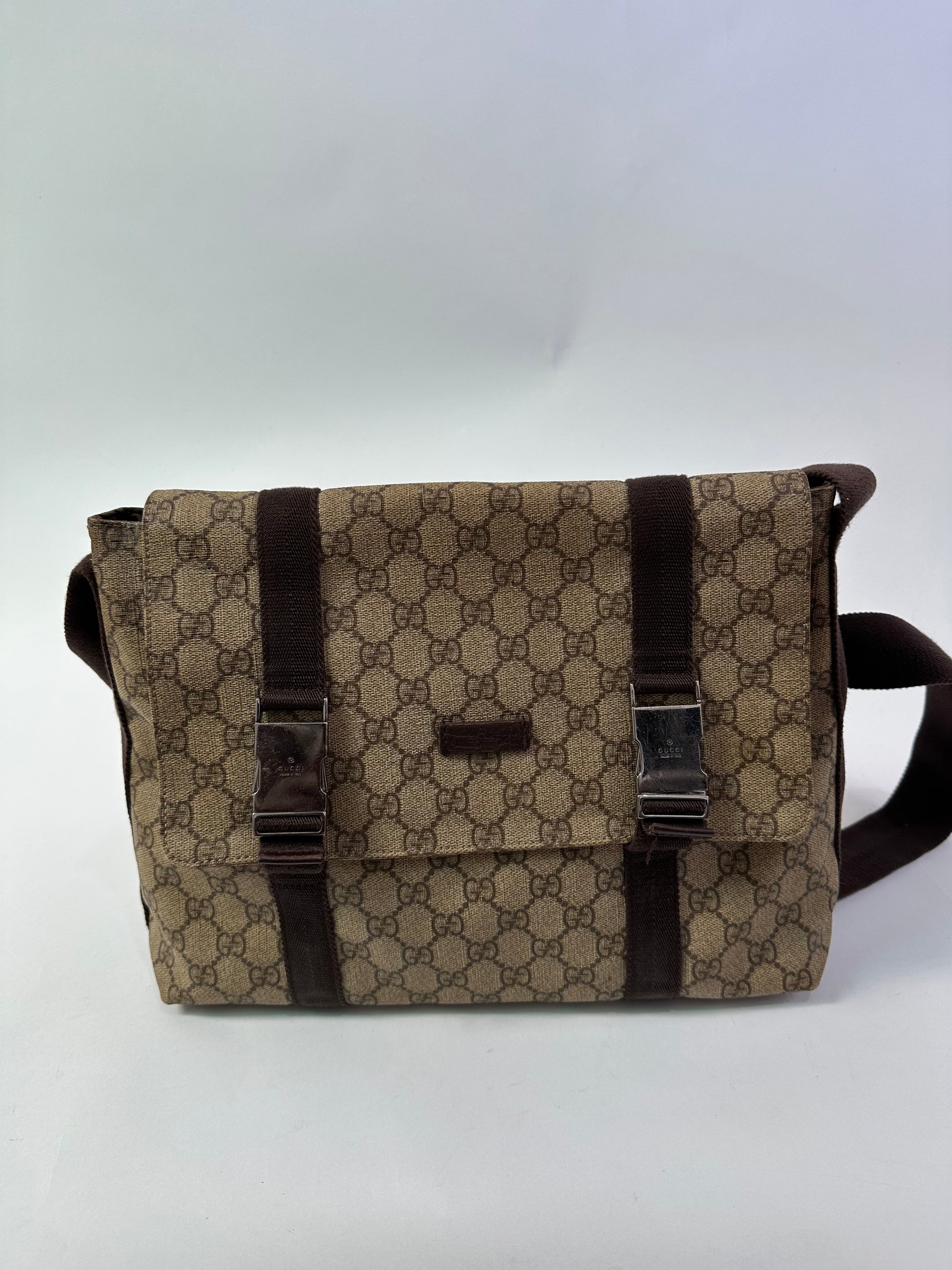 Gucci Beige/Brown GG Supreme Canvas Double Buckle Flap Messenger Bag