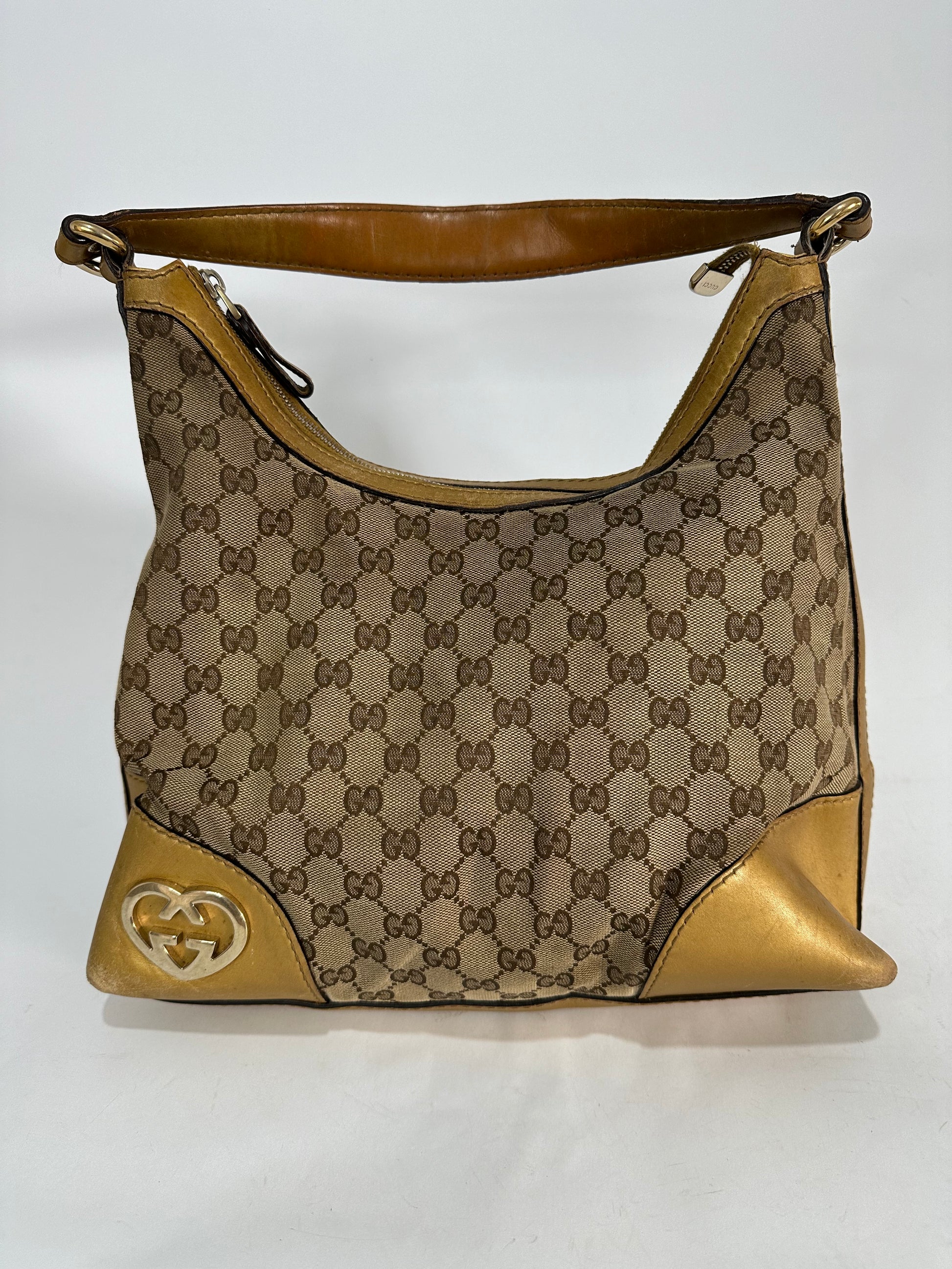 Gucci Beige/Gold GG Canvas and Leather Medium Lovely Hobo