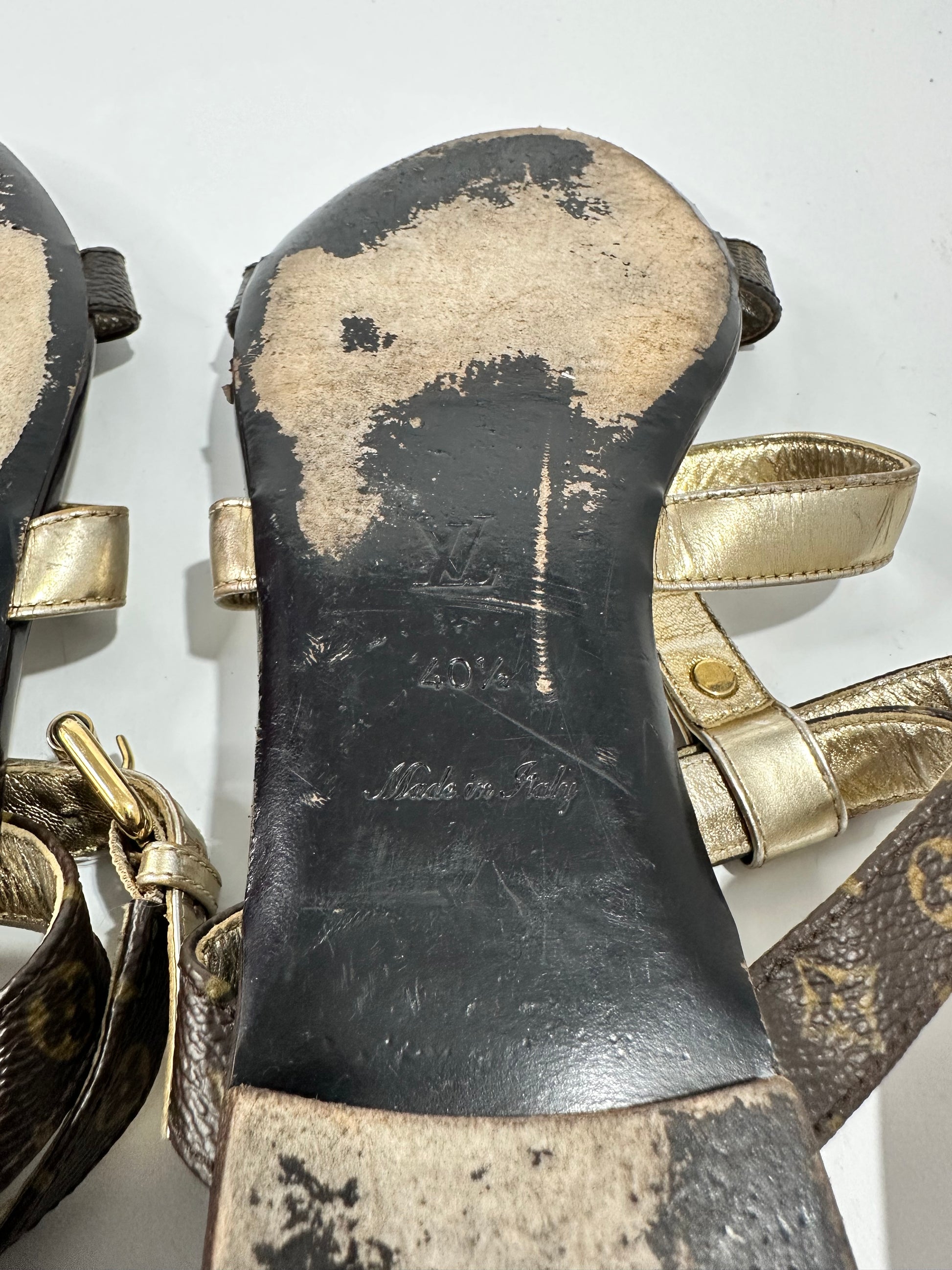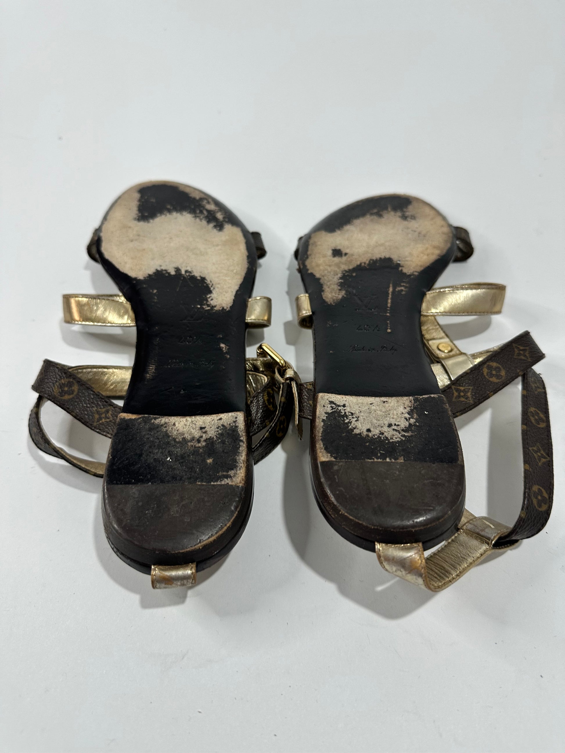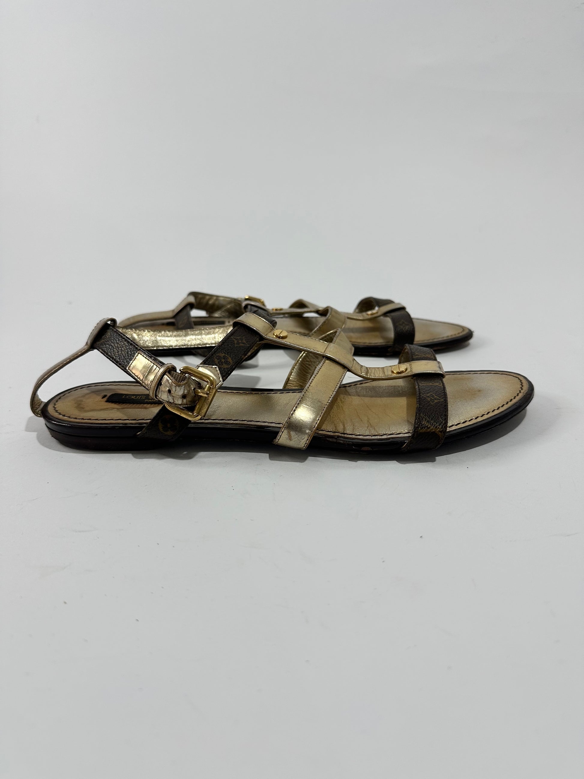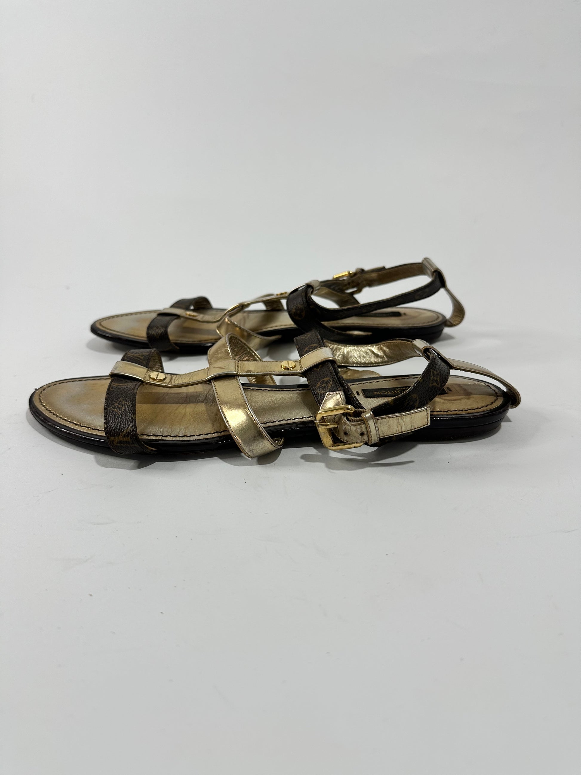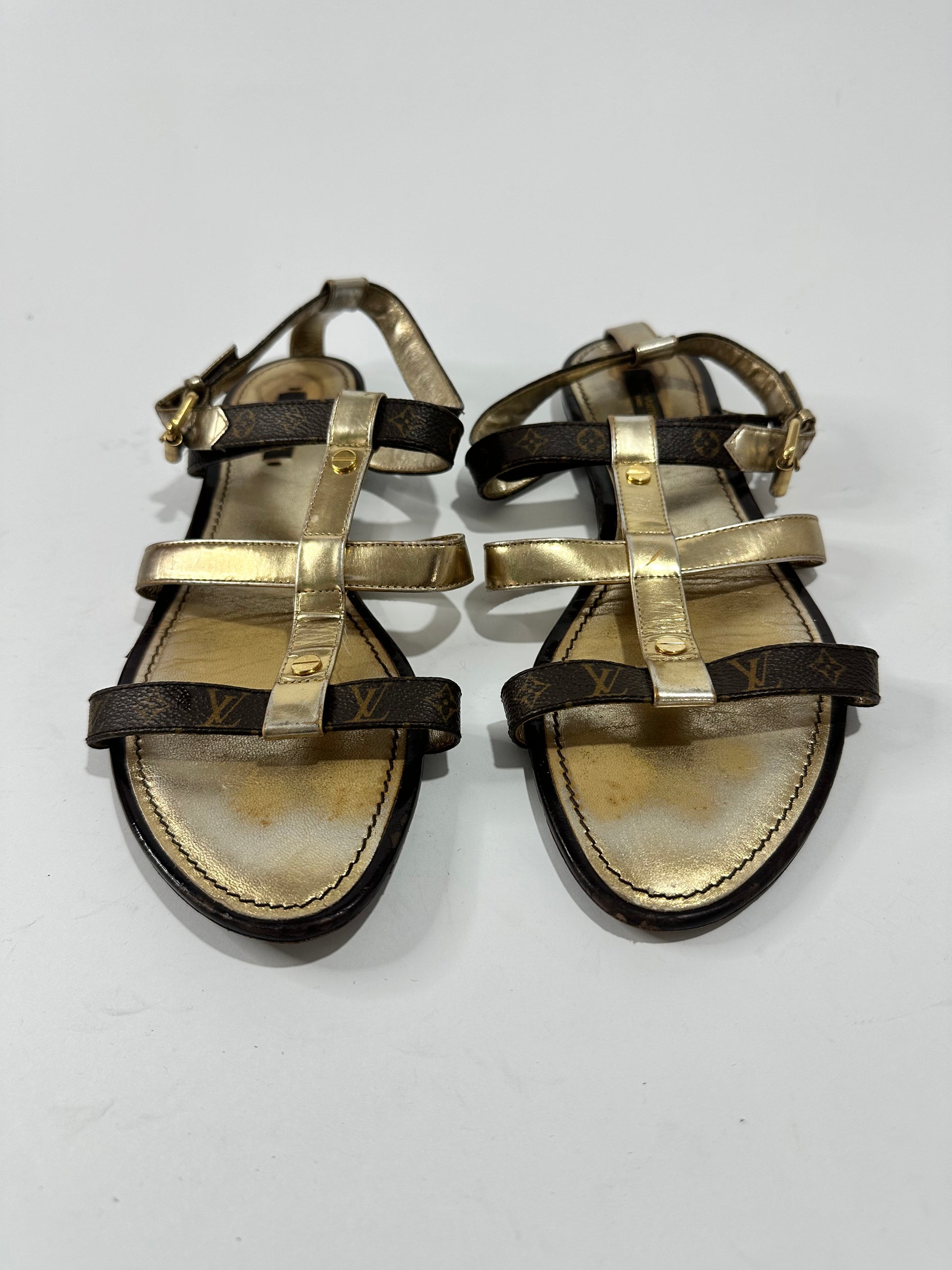 Louis Vuitton Monogram Canvas and Gold Leather Be Happy Flat Sandals Size 40.5