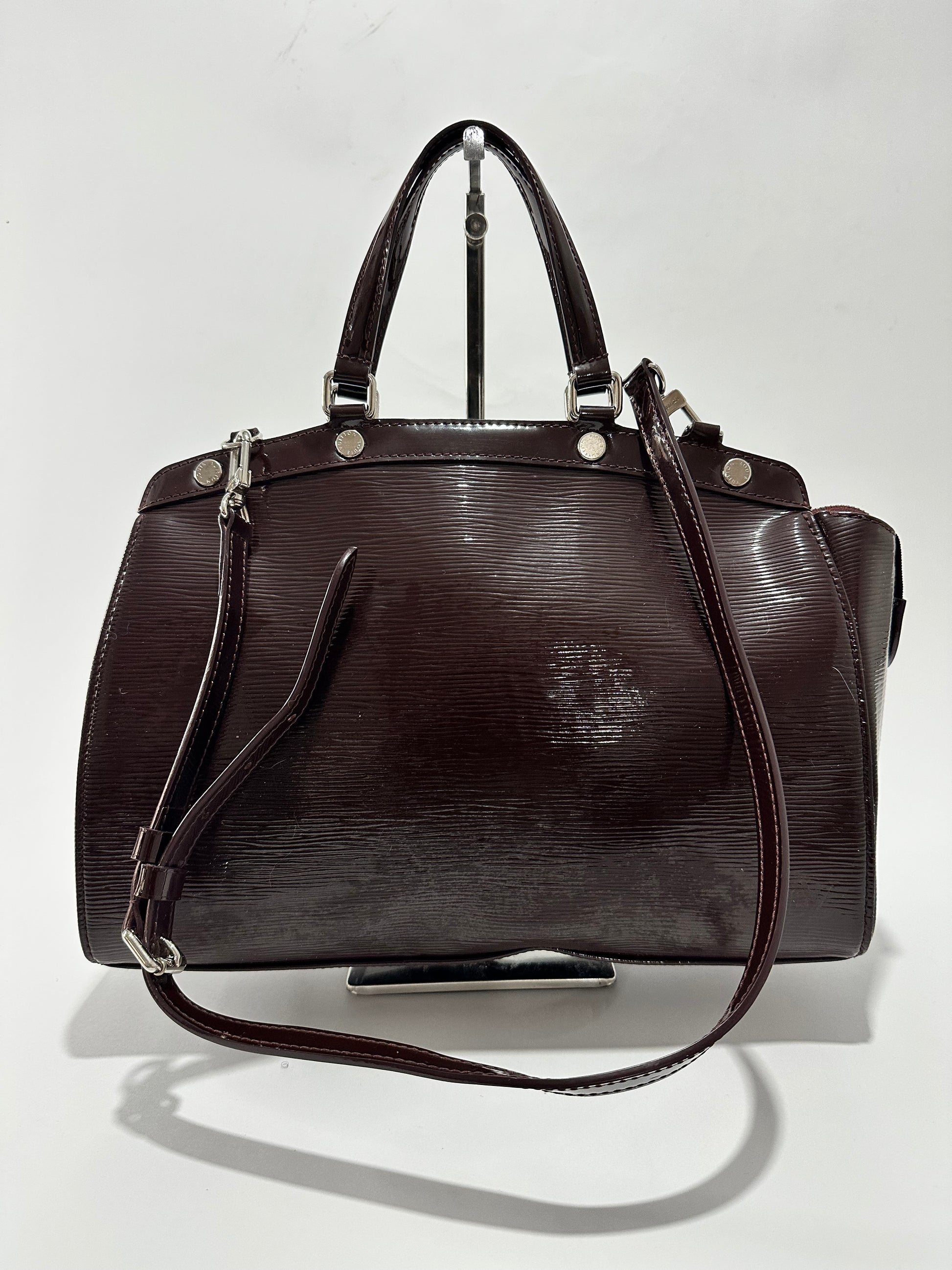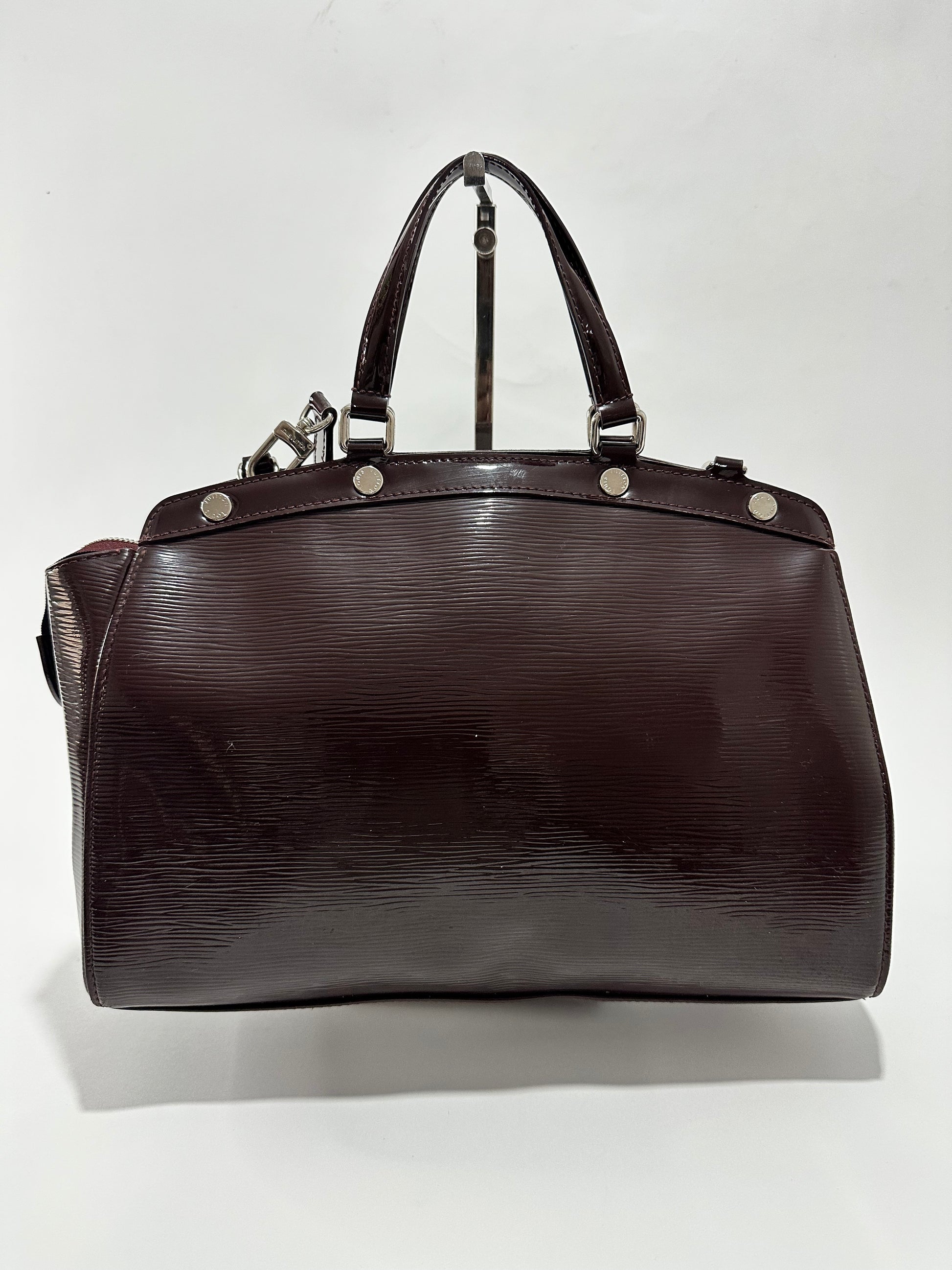 Inspired by the doctor's bag, the Brea is one of the emblematic creations of Louis Vuitton. This MM bag is distinguished by its shiny effect and striking silhouette. Created from the signature Quetsche Epi leather, its functionality is enhanced with dual carrying options and a roomy fabric-lined interior. The silver-tone accents add beauty to the design, and the brand detailing at the front offers a signature finish.