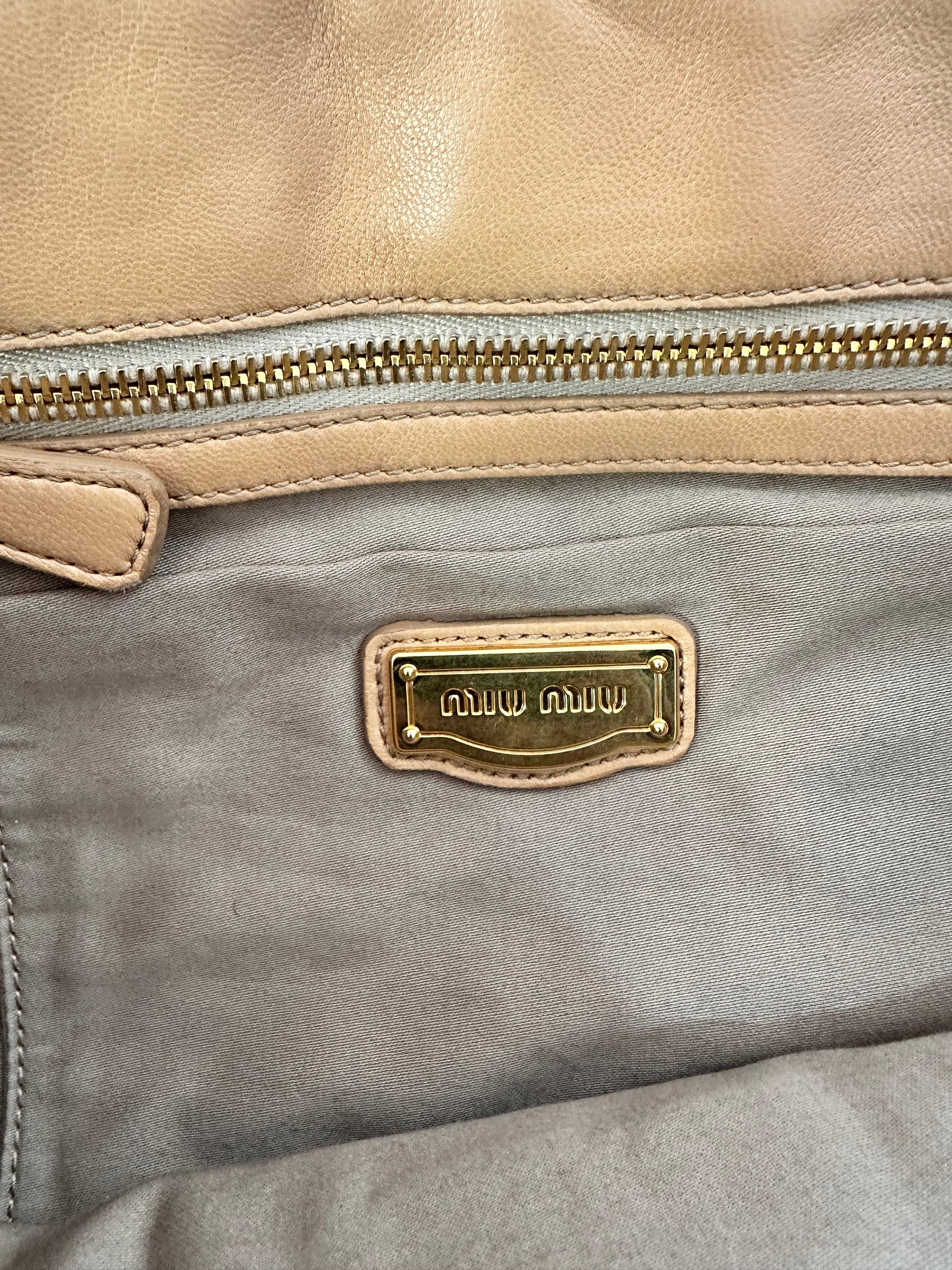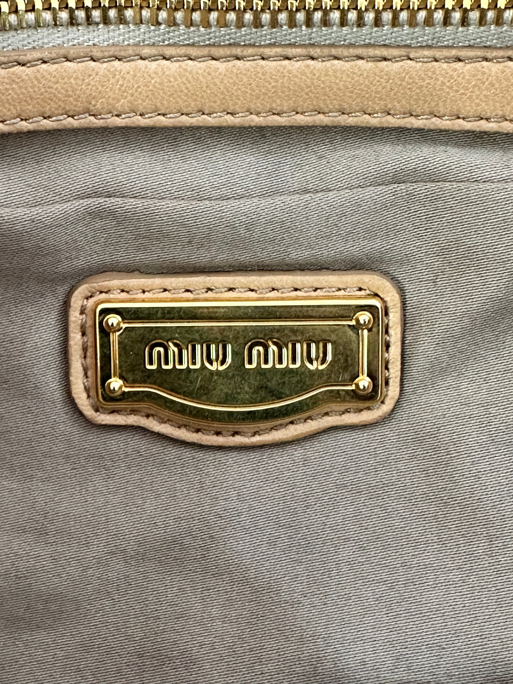 Miu Miu Beige Matelasse Leather Turnlock Top Handle Bag