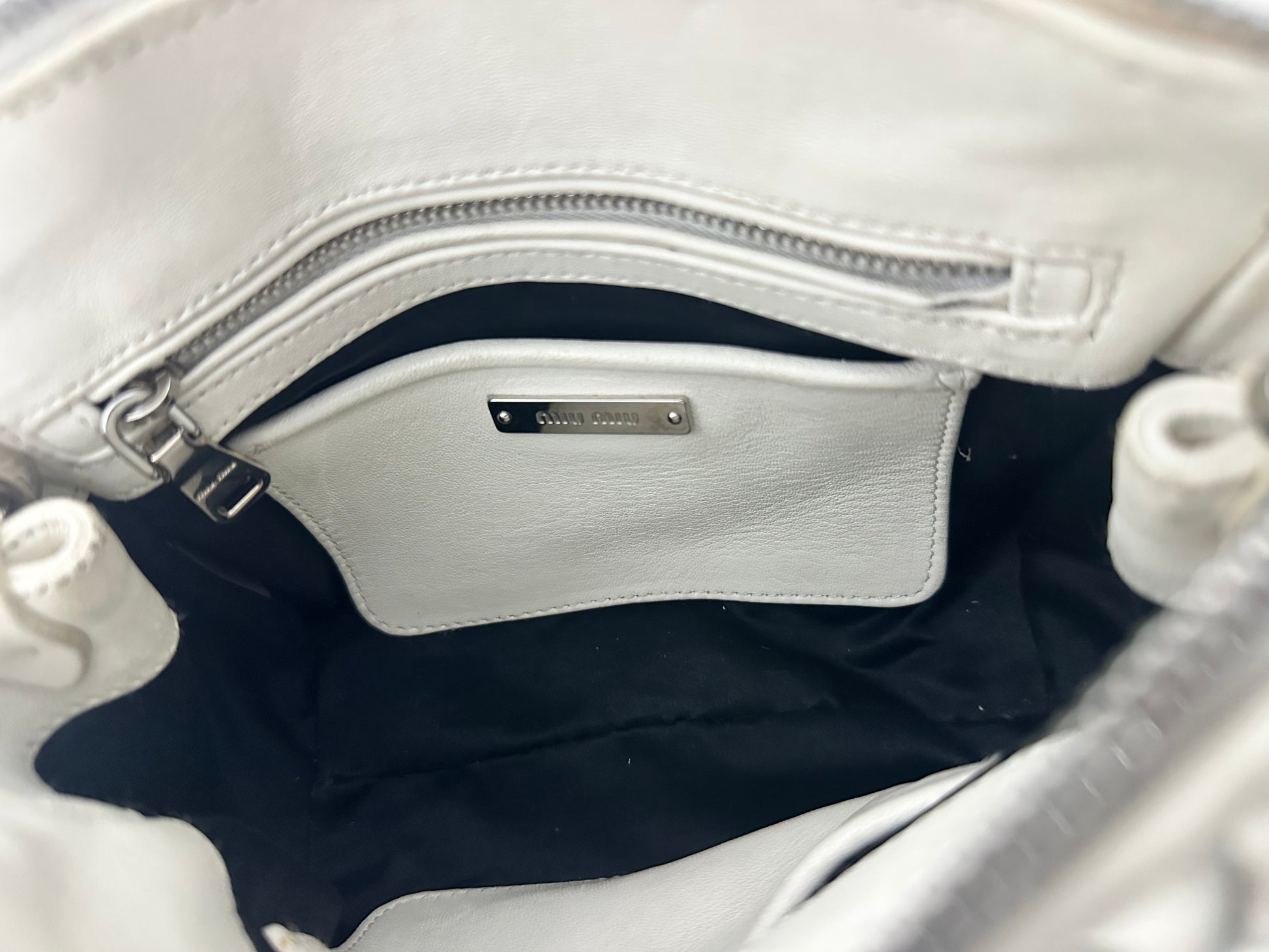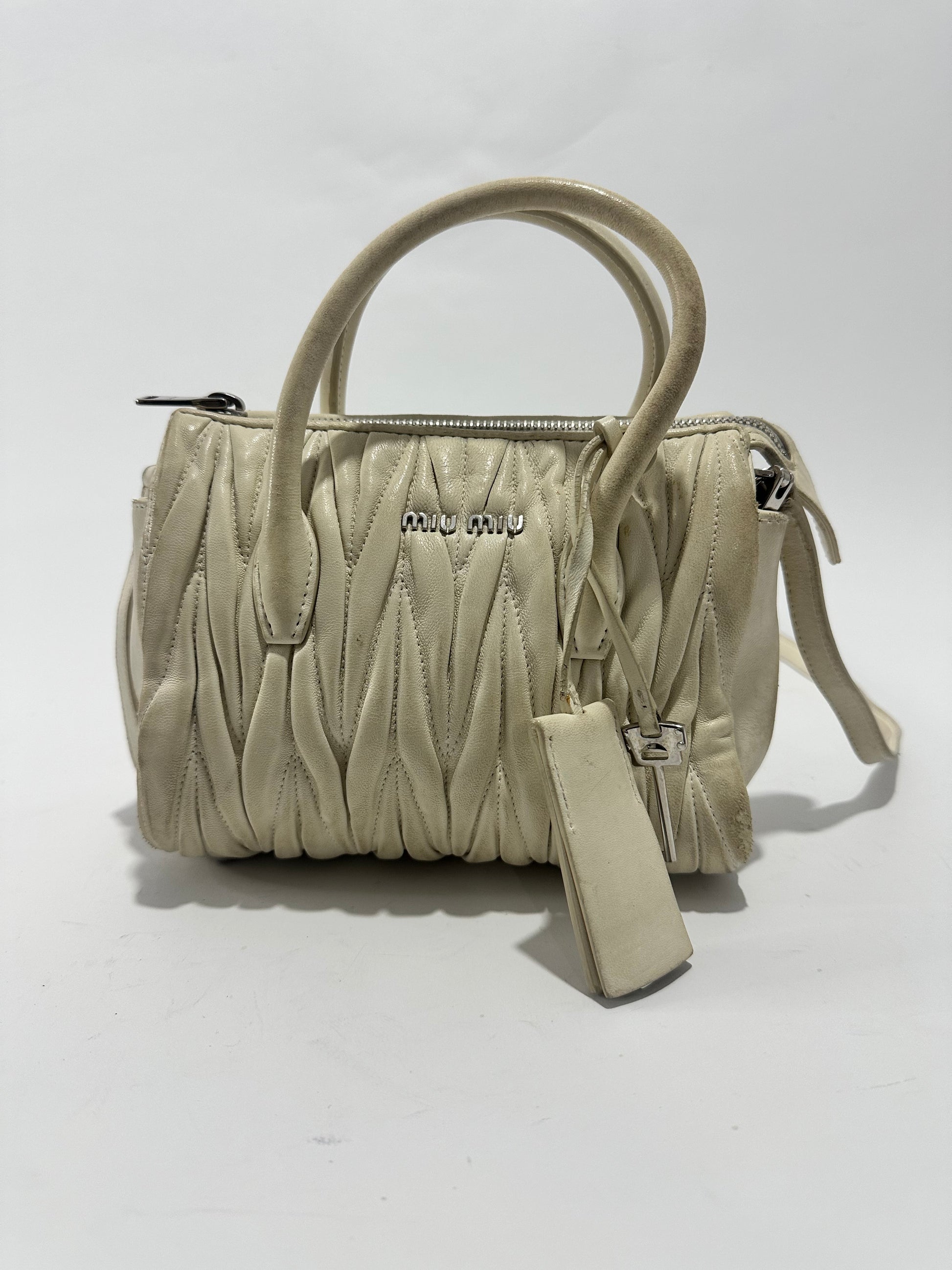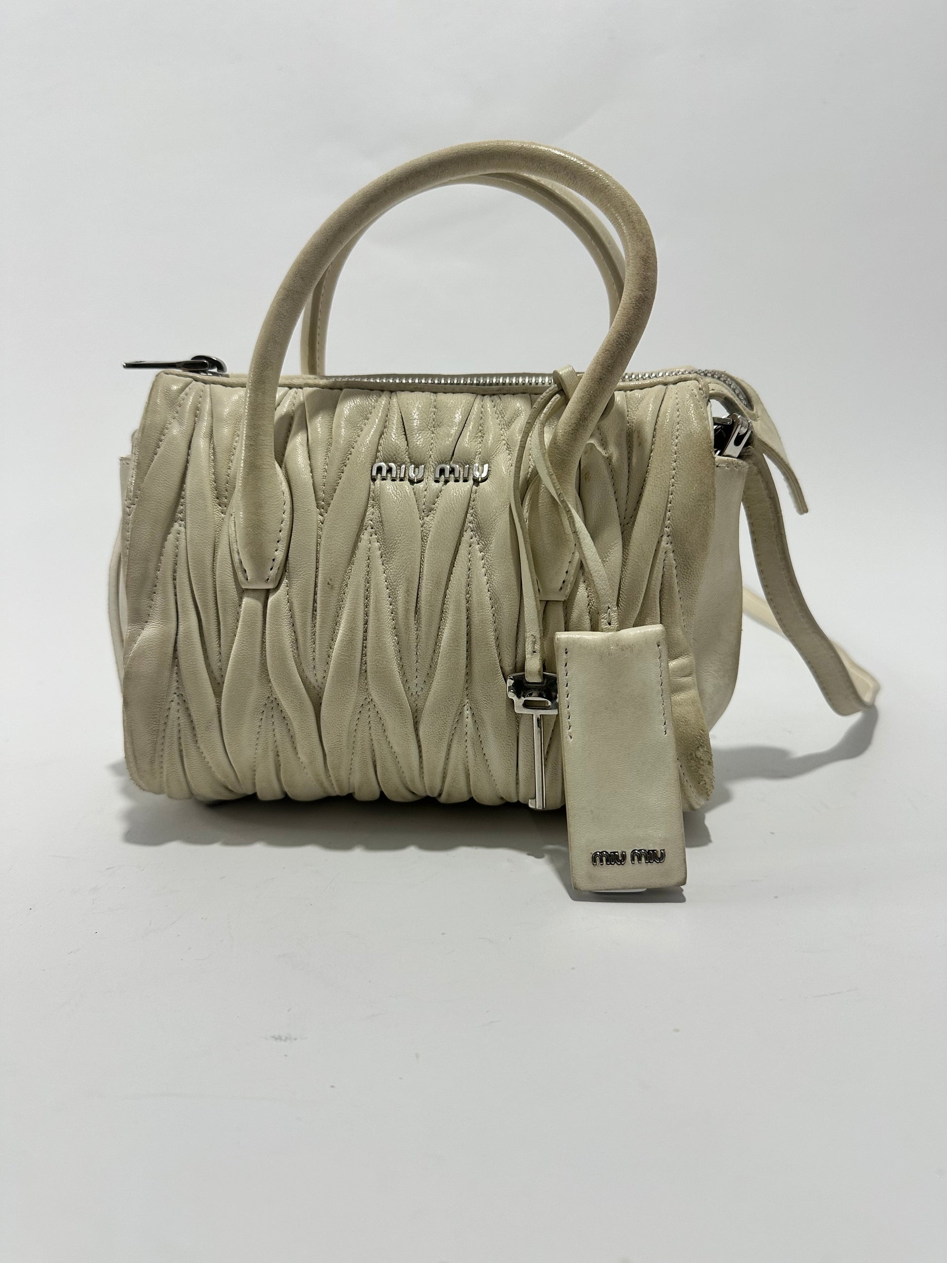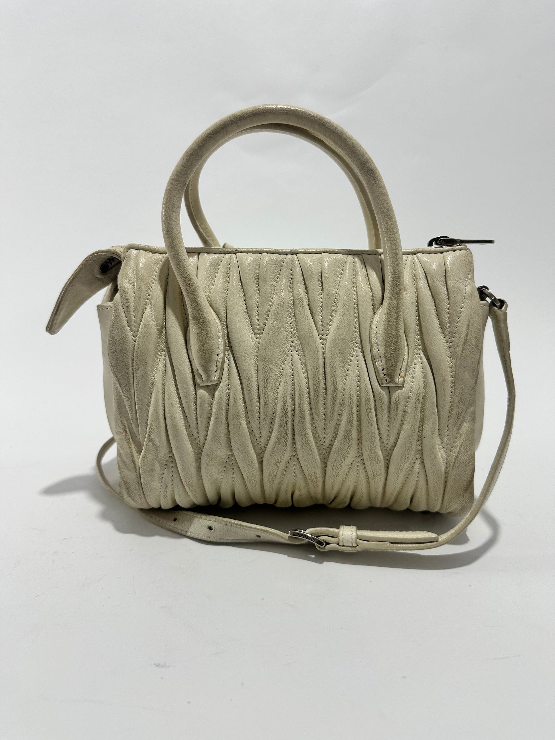 MIU MIU Nappa Matelasse Lux Mini Crossbody Tote Bianco