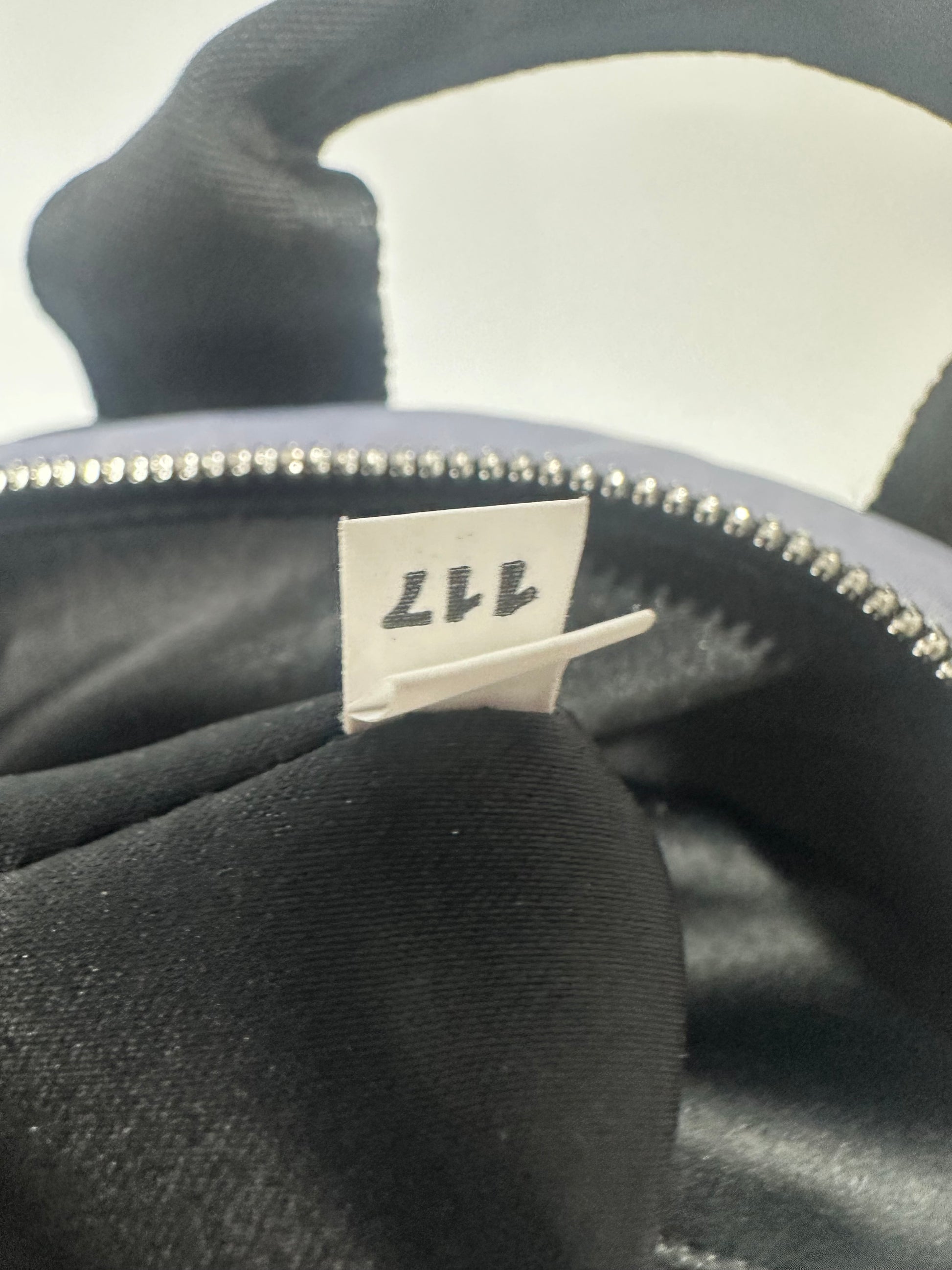 This is an authentic MIU MIU Nylon Satin Patches Bomber Backpack. This stylish backpack is crafted of blue satin, and features Miu Miu patches on the front zipper pocket. The backpack has a black nylon top handle, and matching, adjustable backpack straps. The polished silver wrap-around zippers open to a black satin interior with zipper and patch pockets. This chic backpack is perfect for everyday essentials, with one of a kind style, only from Miu Miu!