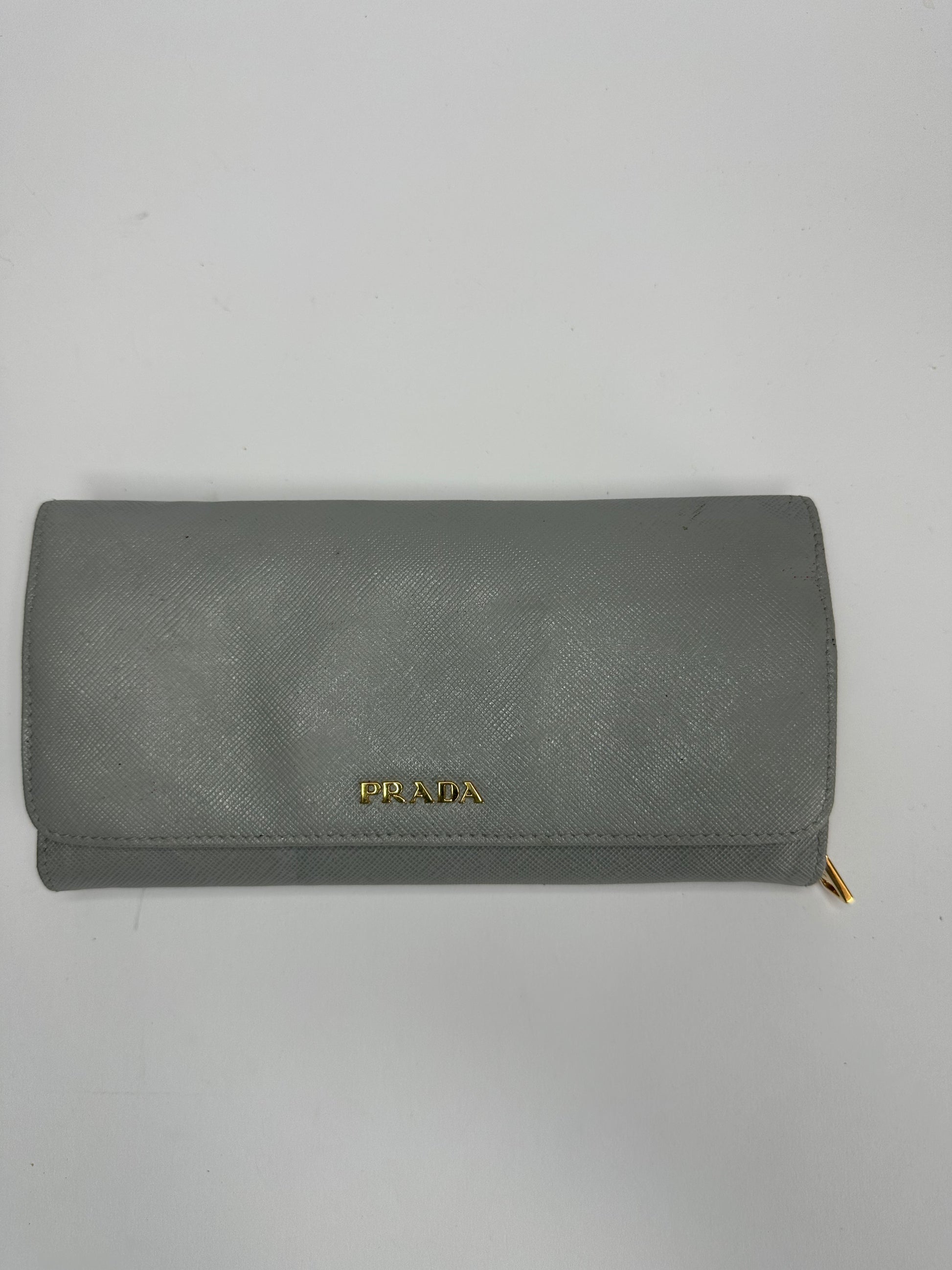 Prada Beige Saffiano Lux Leather Flap Continental Wallet