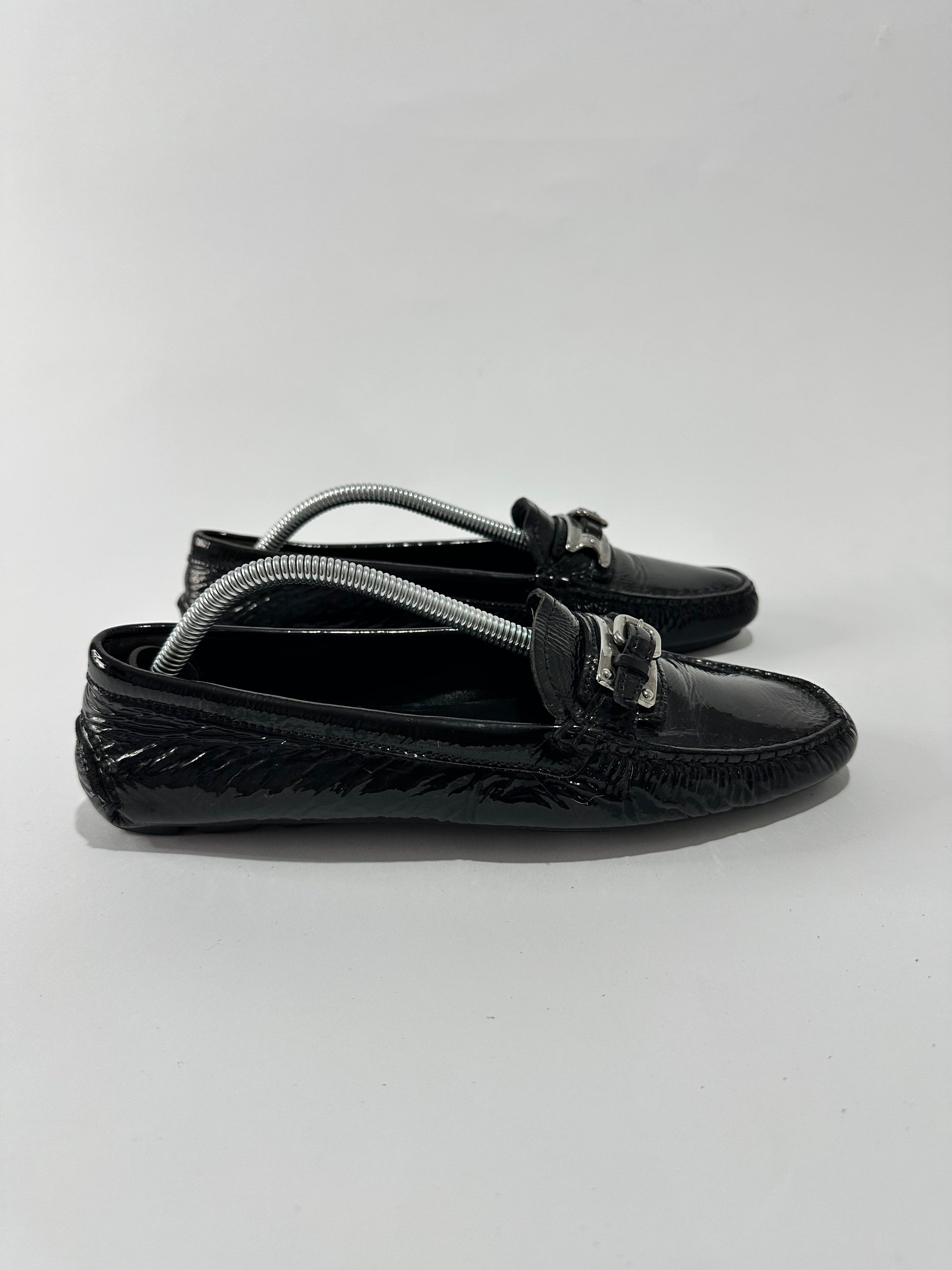 Prada Black Patent Leather Slip on Loafers Size 36.5 EU/ 6.5 US/ 3.5 UK
