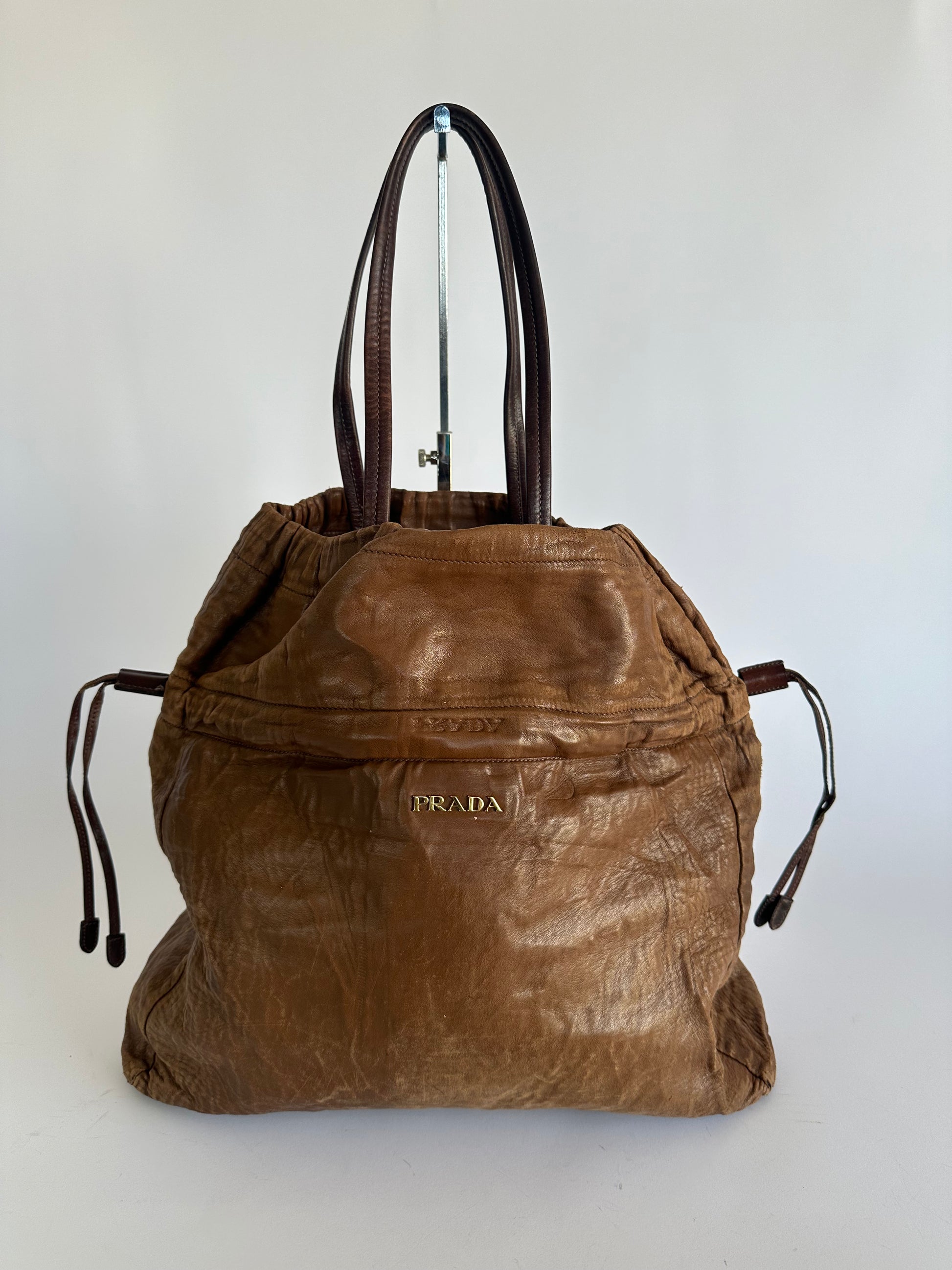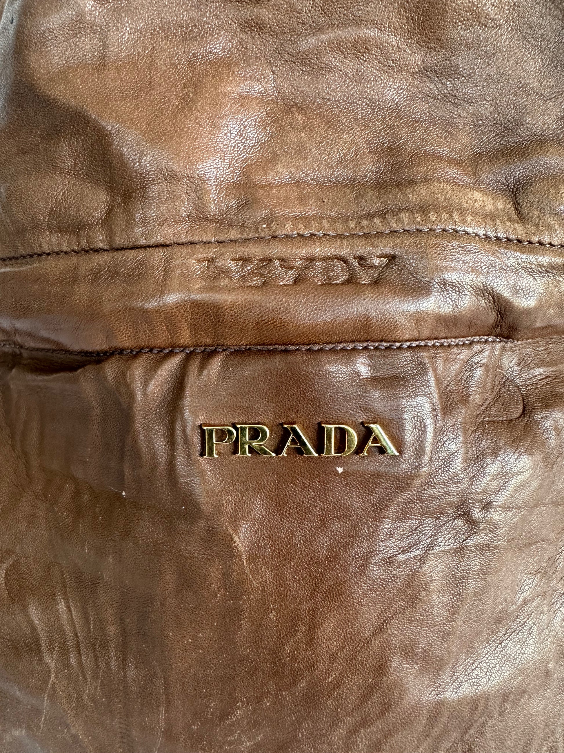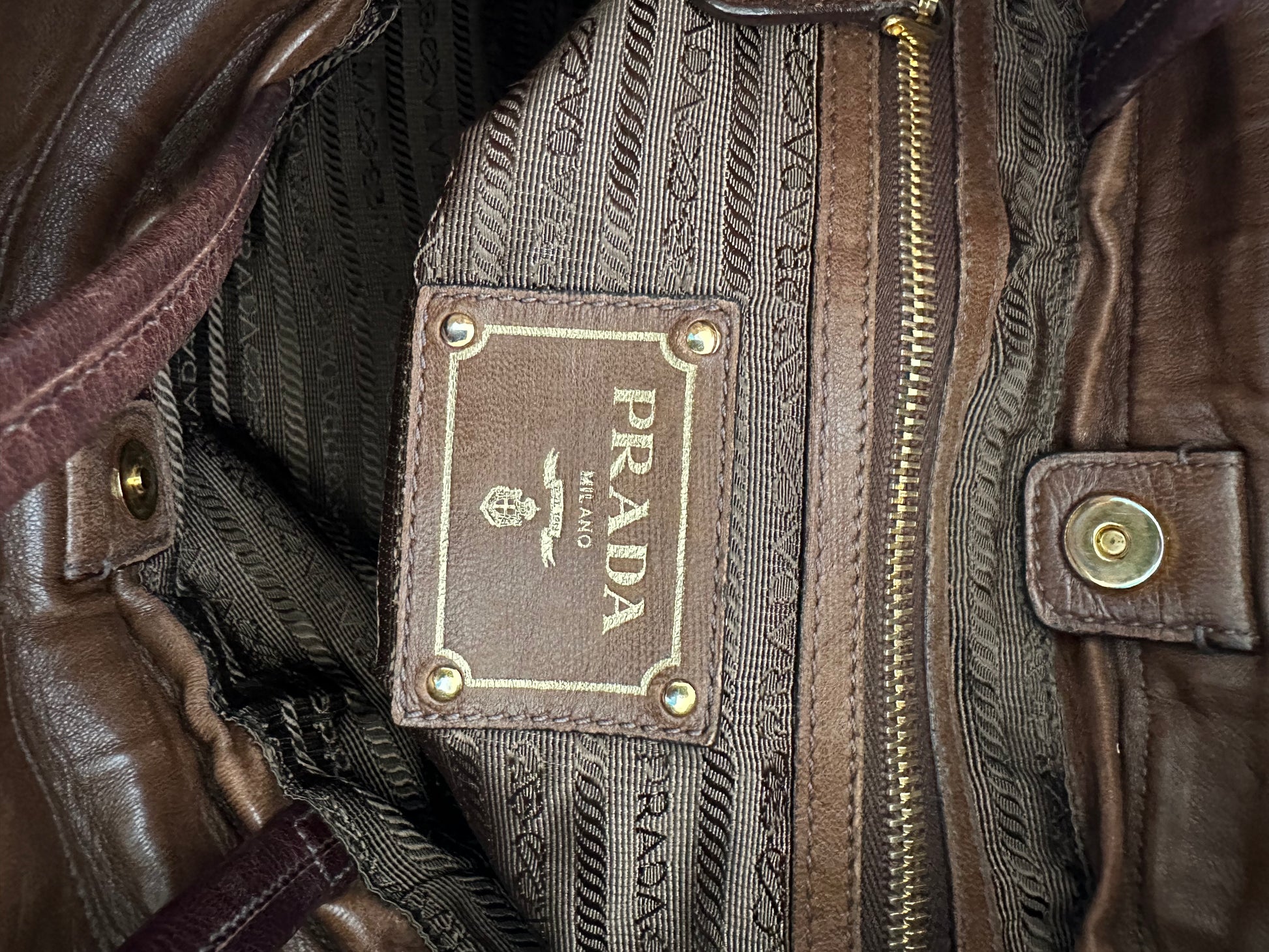 Expertly crafted with luxurious brown Nappa leather and accented with gold-tone hardware, this Prada Tote is the perfect combination of elegance and practicality. Its dual shoulder straps provide comfort and style, while the logo jacquard lining and single interior pocket ensure functionality. Complete with a snap closure at the top, this tote is a must-have addition to any sophisticated wardrobe.Condition: Good