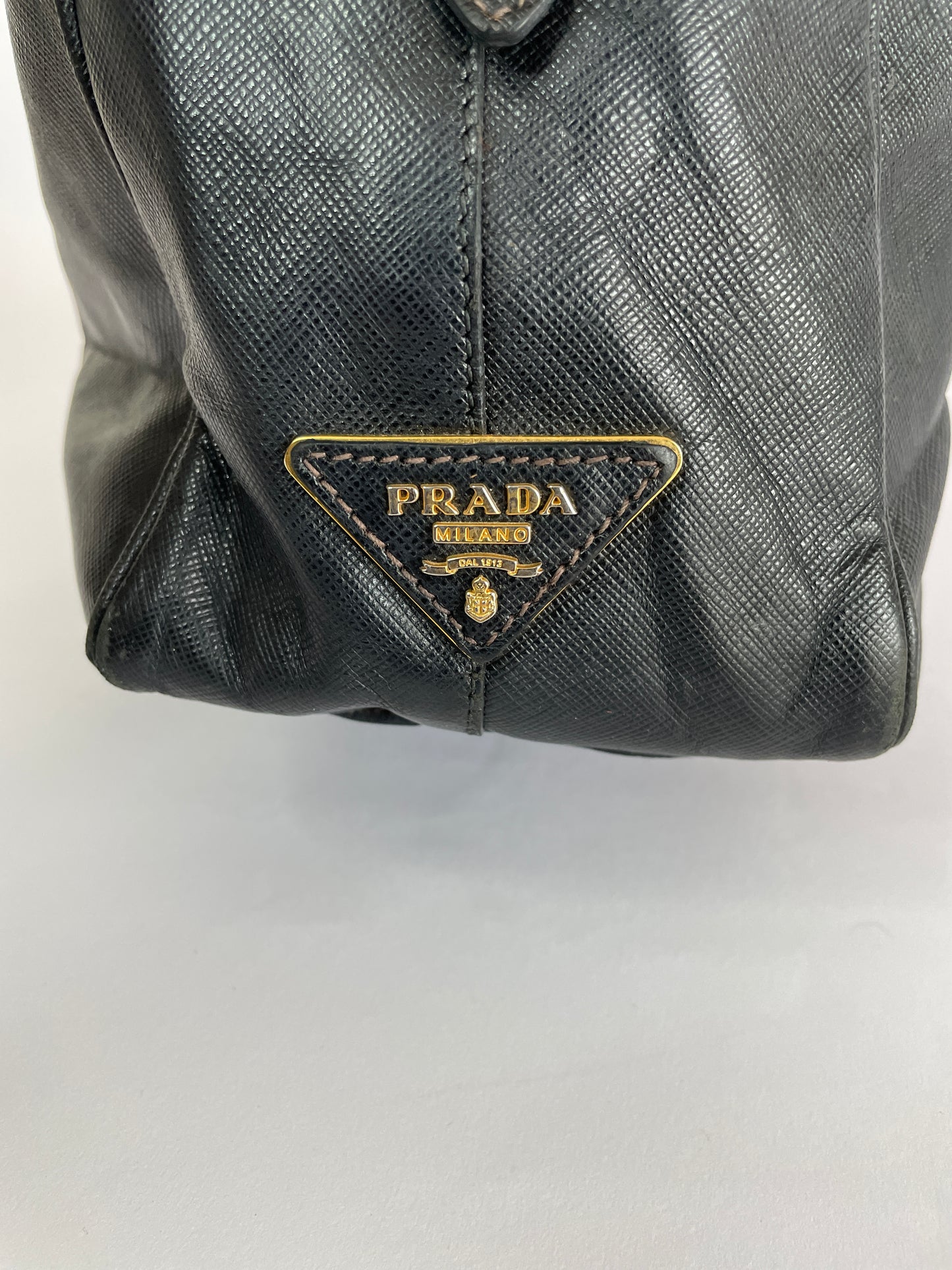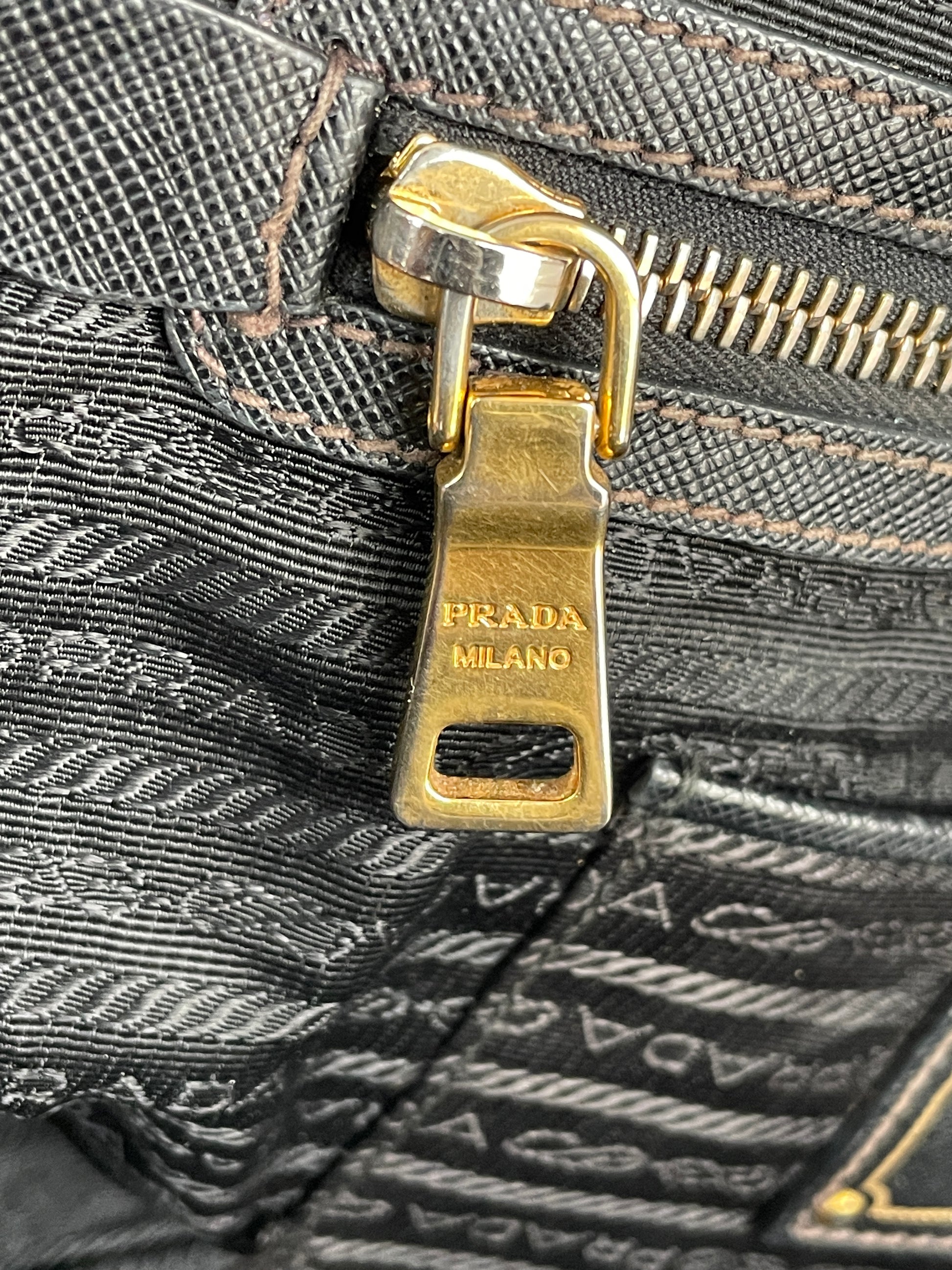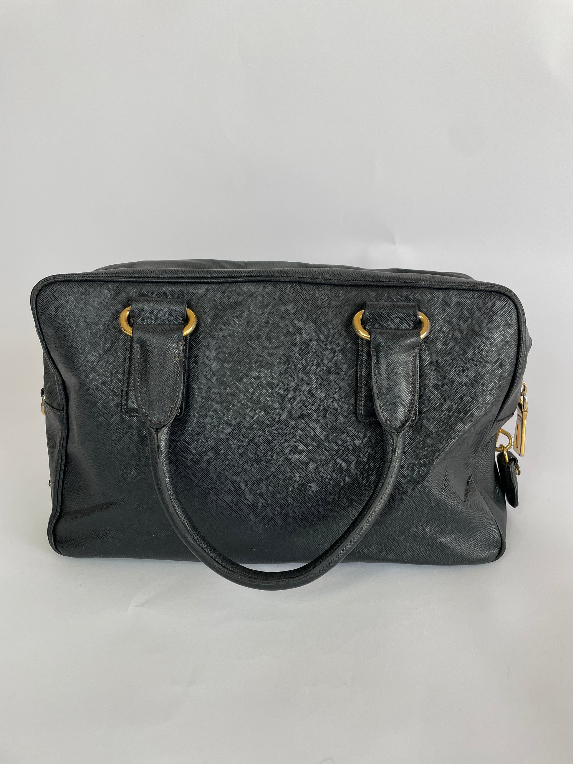 This is an authentic PRADA Saffiano Travel Briefcase in Nero Black. This stylish briefcase is crafted of luxurious saffiano cross grain leather in black. This structured case features rolled leather top handles and polished silver hardware. The wrap around top zipper opens to a black leather interior with a large zippered pocket and ample space ideal for business or personal use, from Prada!