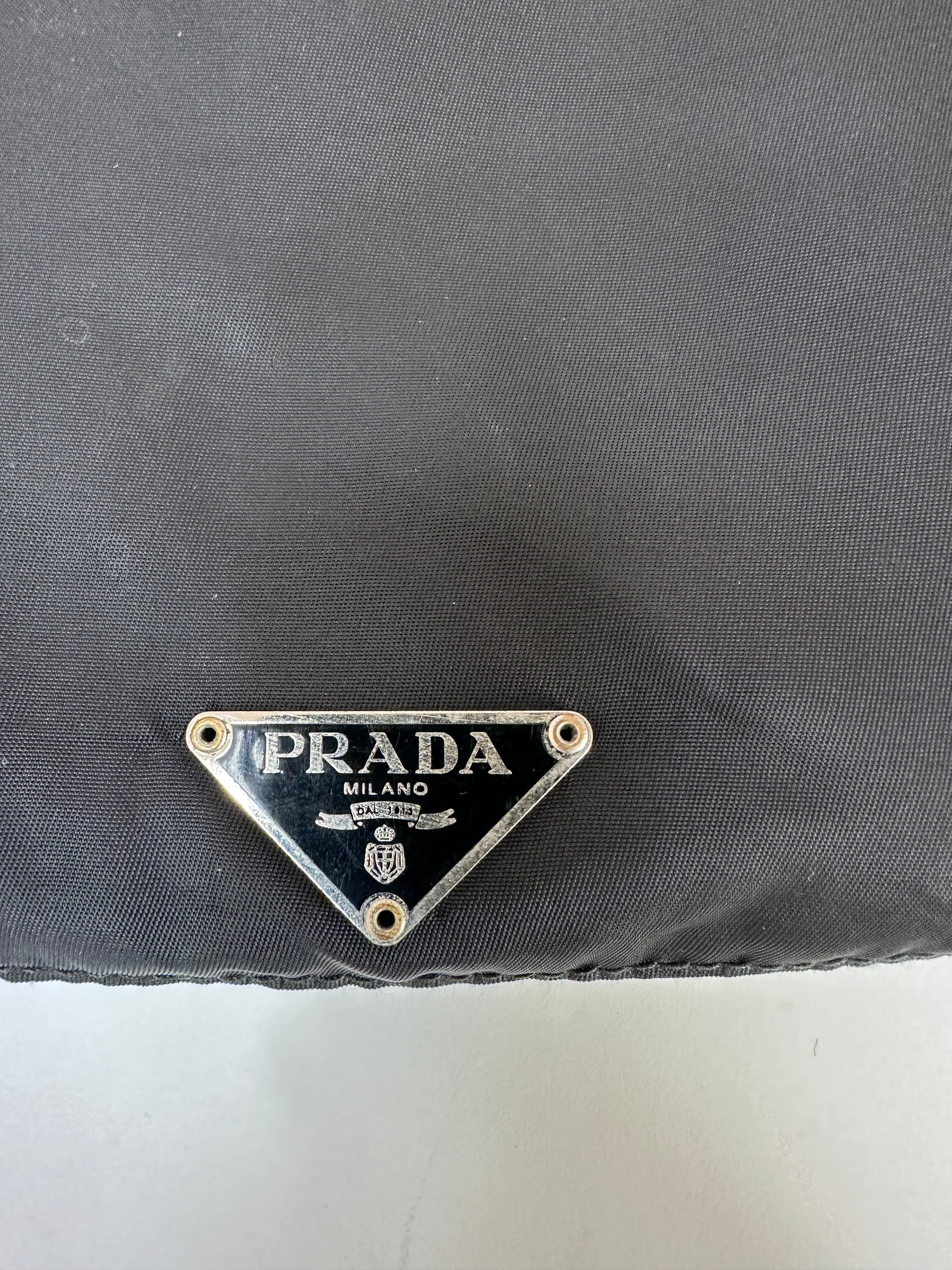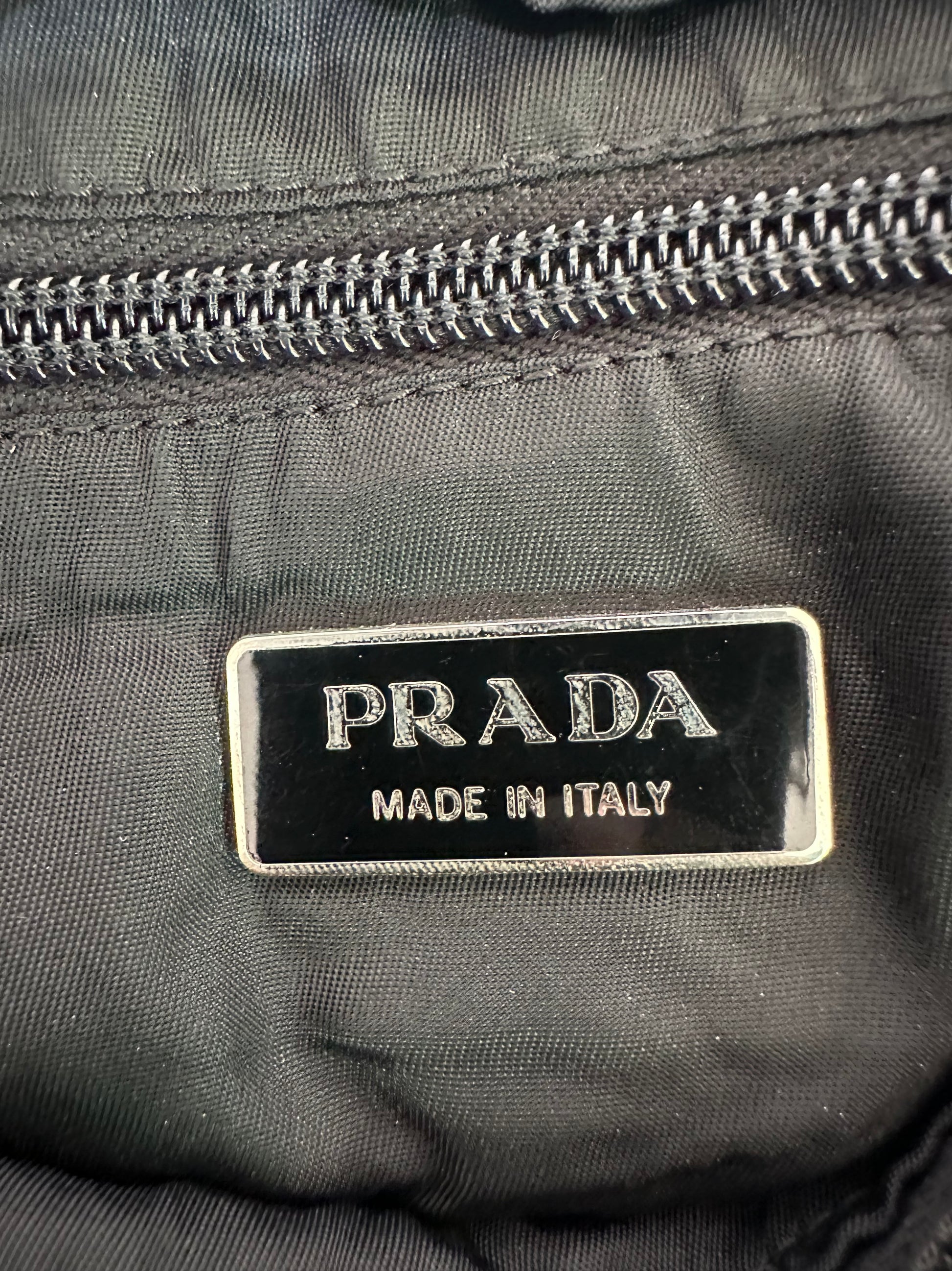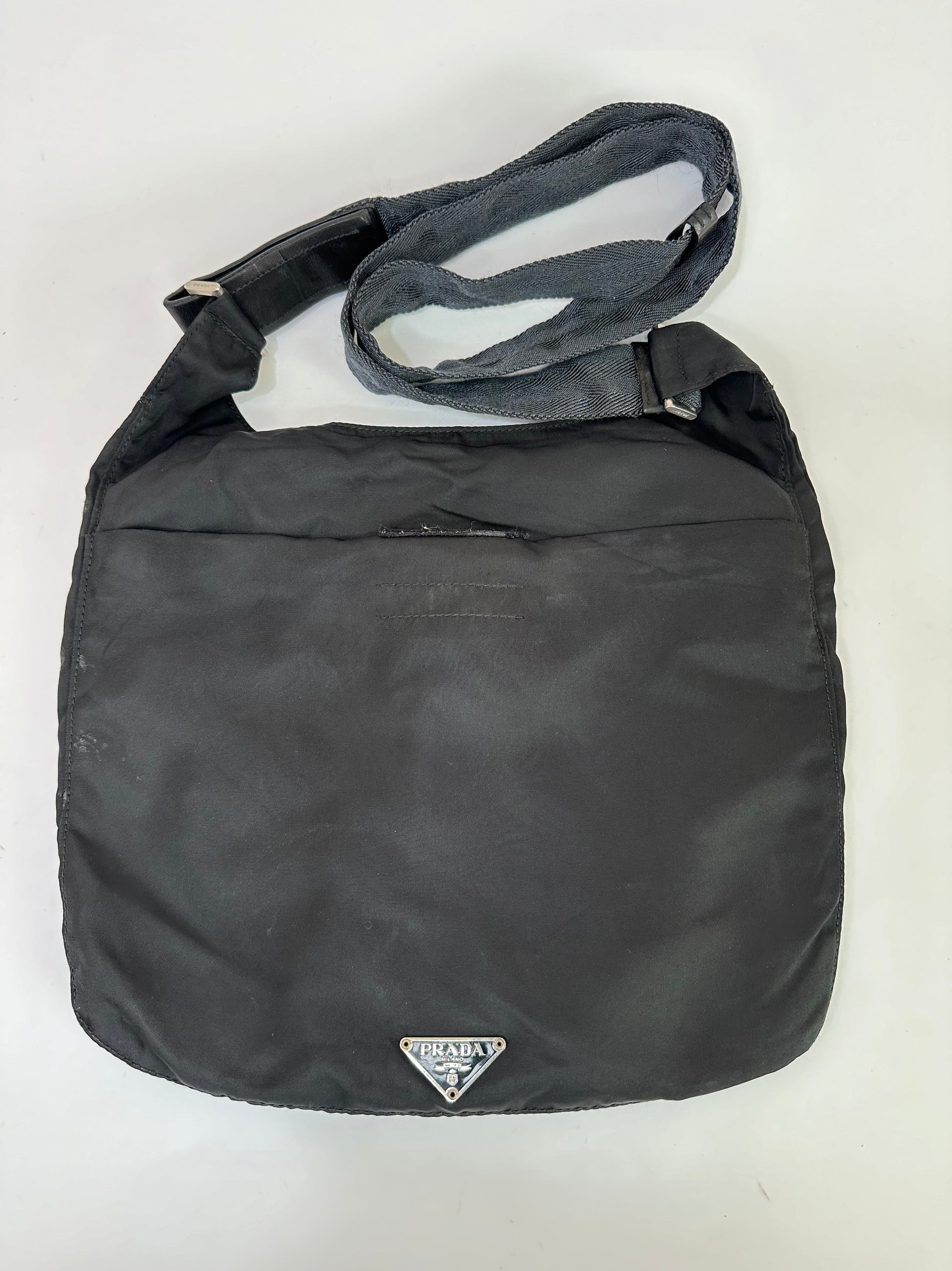 This is an authentic PRADA Tessuto Nylon Crossbody Bag in Black. This stylish messenger bag is crafted of fine tessuto nylon in black. The shoulder bag features a long adjustable shoulder strap, a front pocket, and polished silver hardware. The top zipper opens to a black fabric interior.