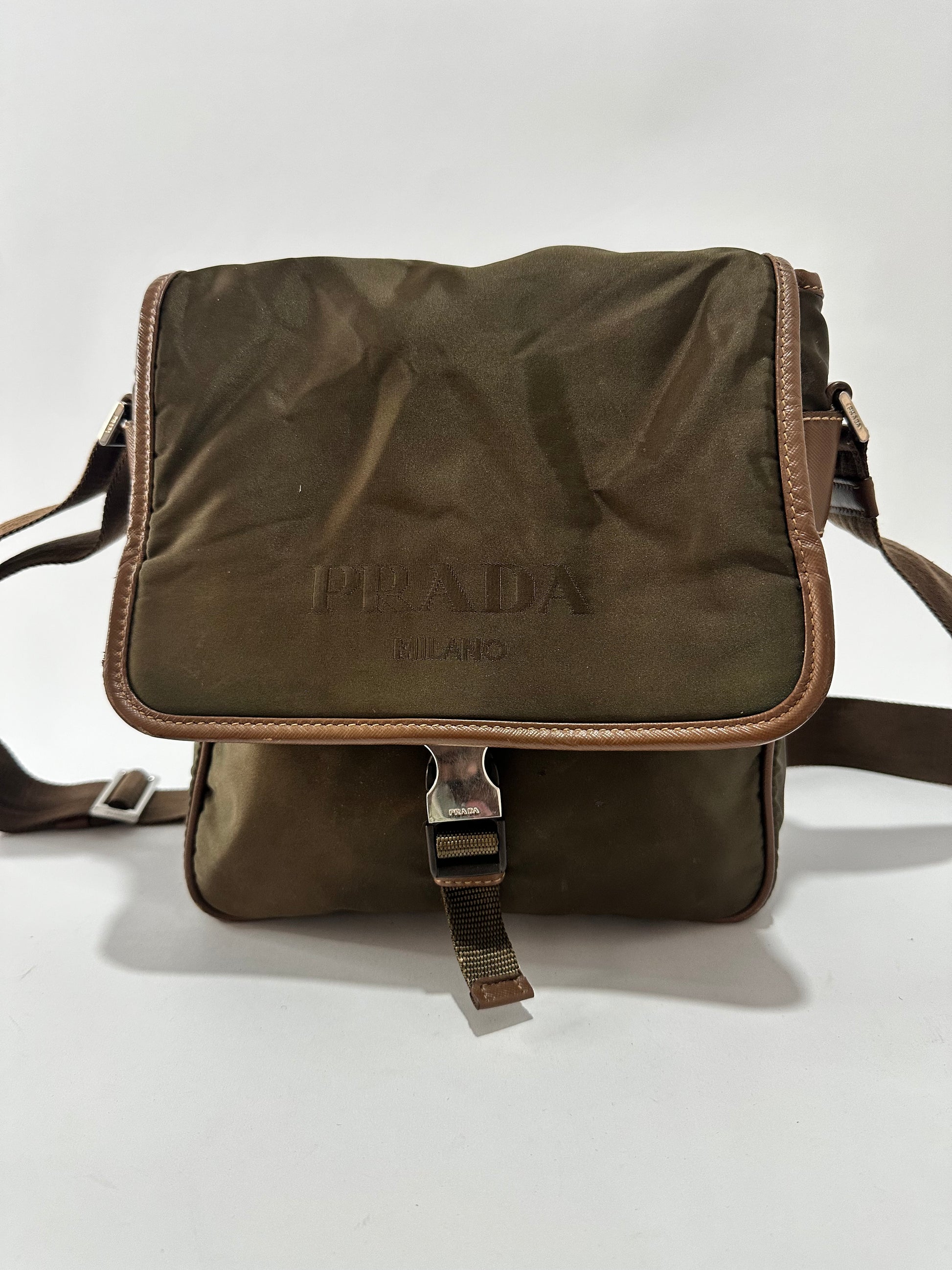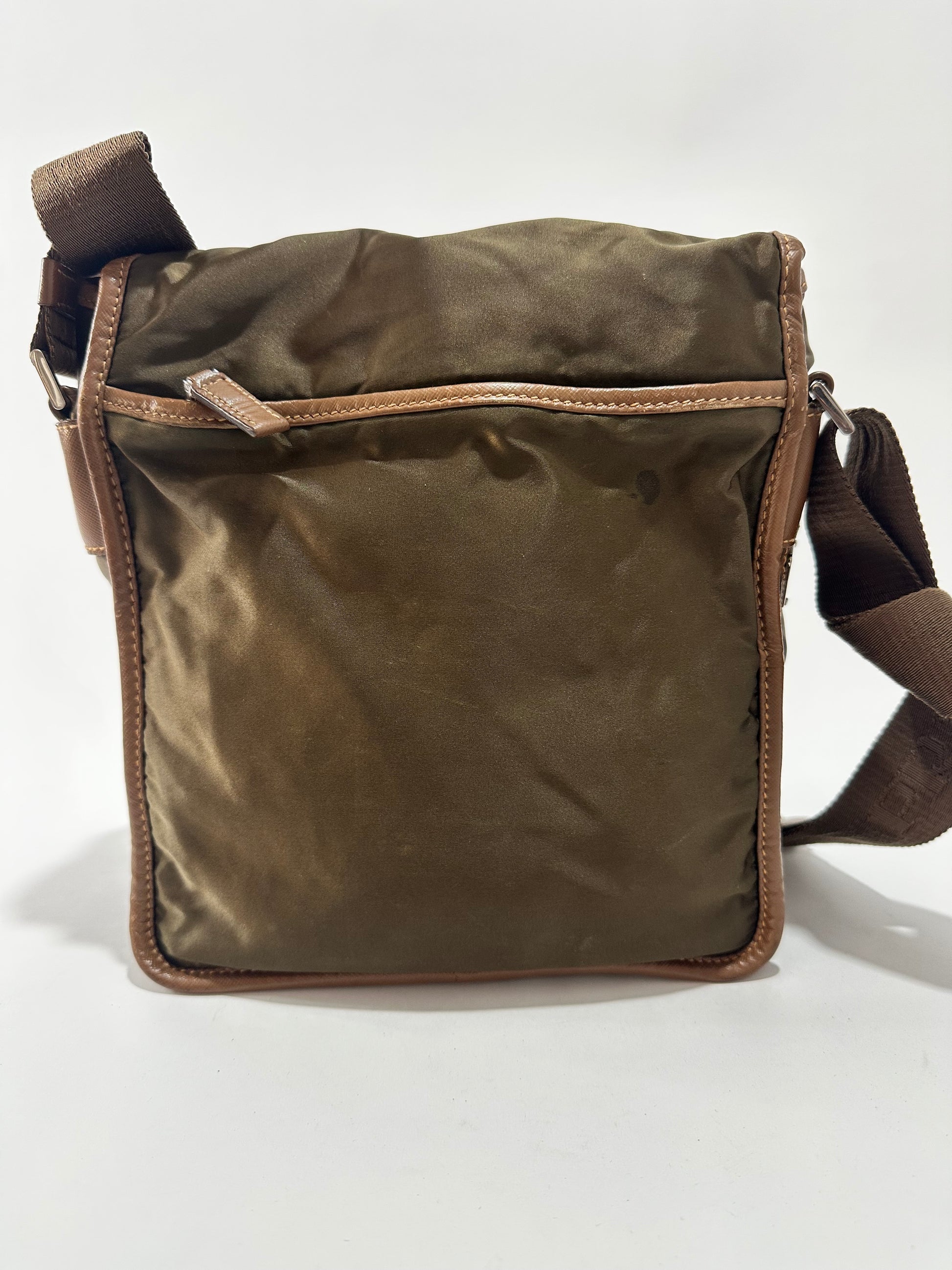 PRADA Tessuto Nylon Saffiano Logo Messenger Bag Olive Green