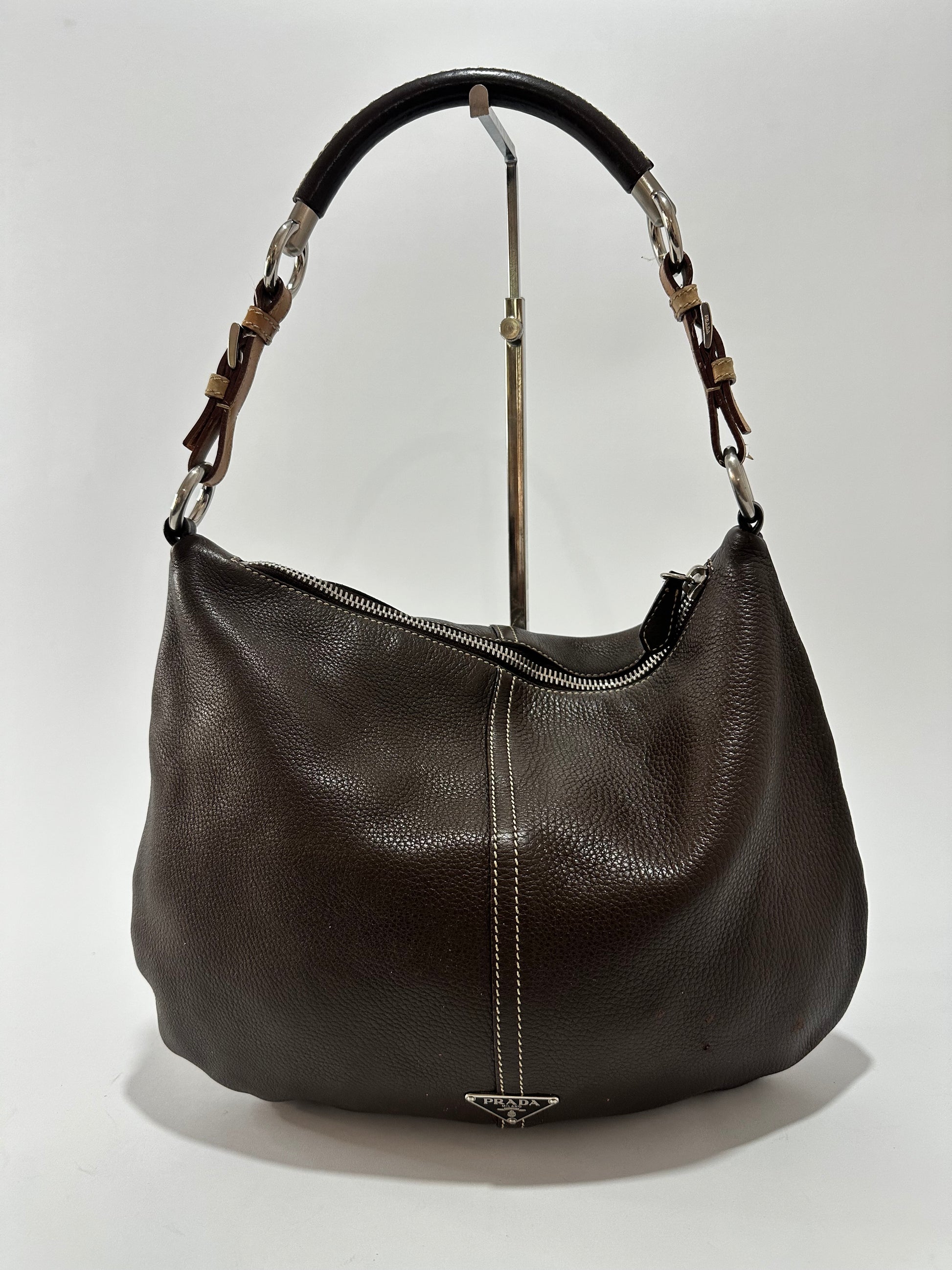 Prada Brown Vitello Daino Shoulder Bag Dark brown