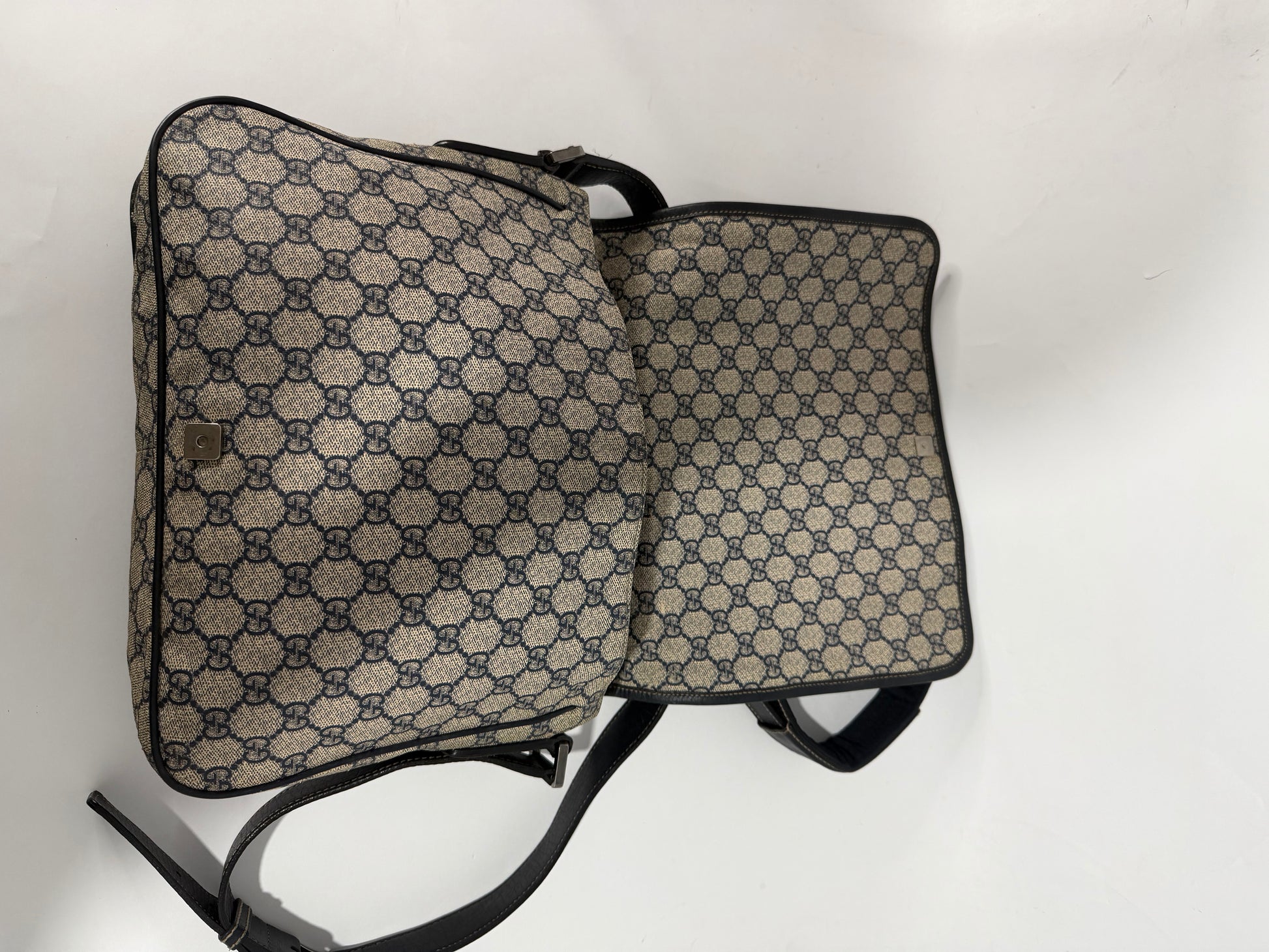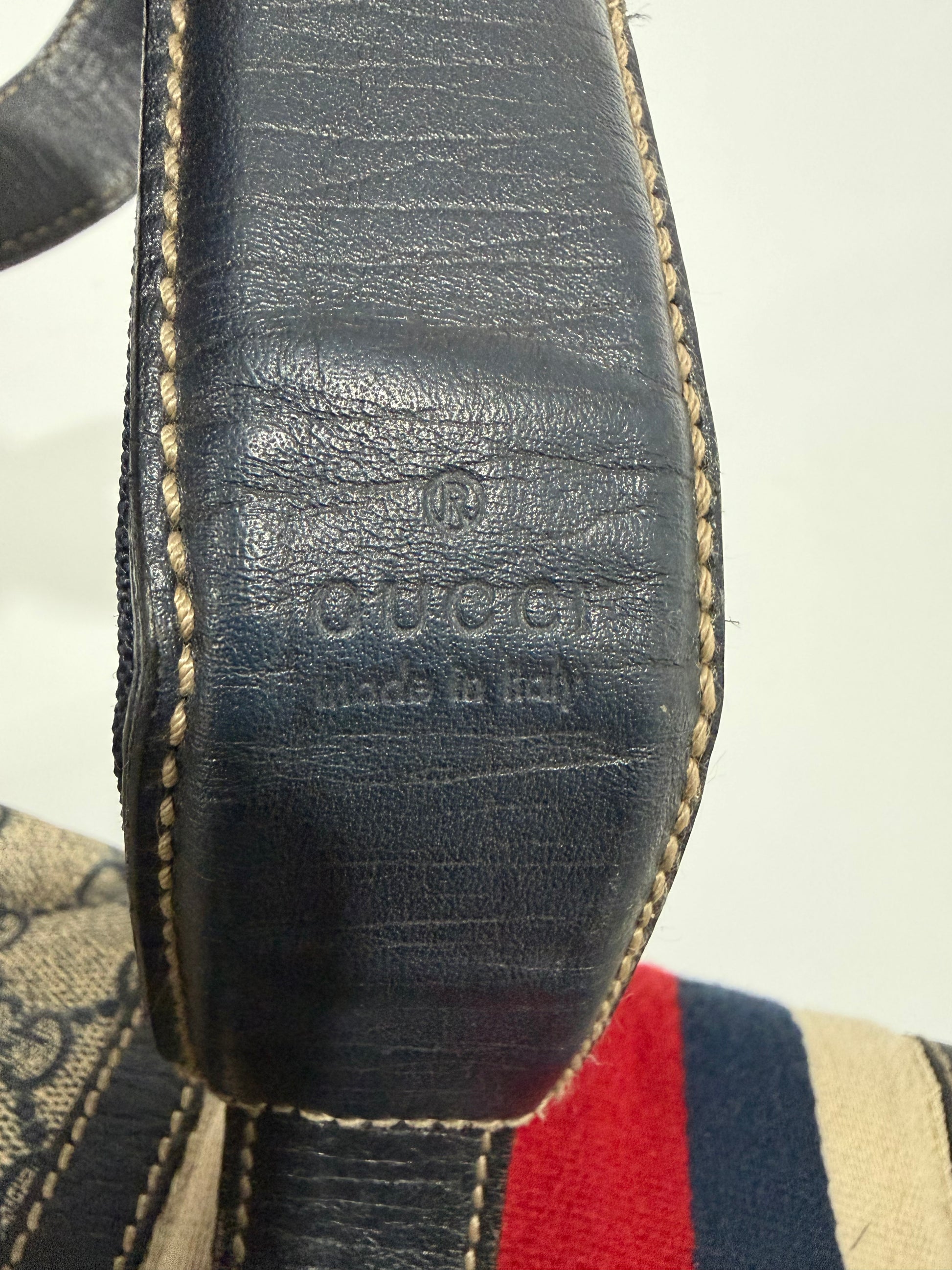 This classic Gucci Blue GG Coated Canvas Vintage Web Messenger Bag makes a perfect everyday bag. It features durable GG coated canvas with the classic blue and red canvas strip down the center of the flap and leather trim. This bag also comes with an adjustable leather strap that can be worn on the shoulder or cross body for ultimate hands-free convenience. This chic messenger bag will easily hold your all daily essentials in style.