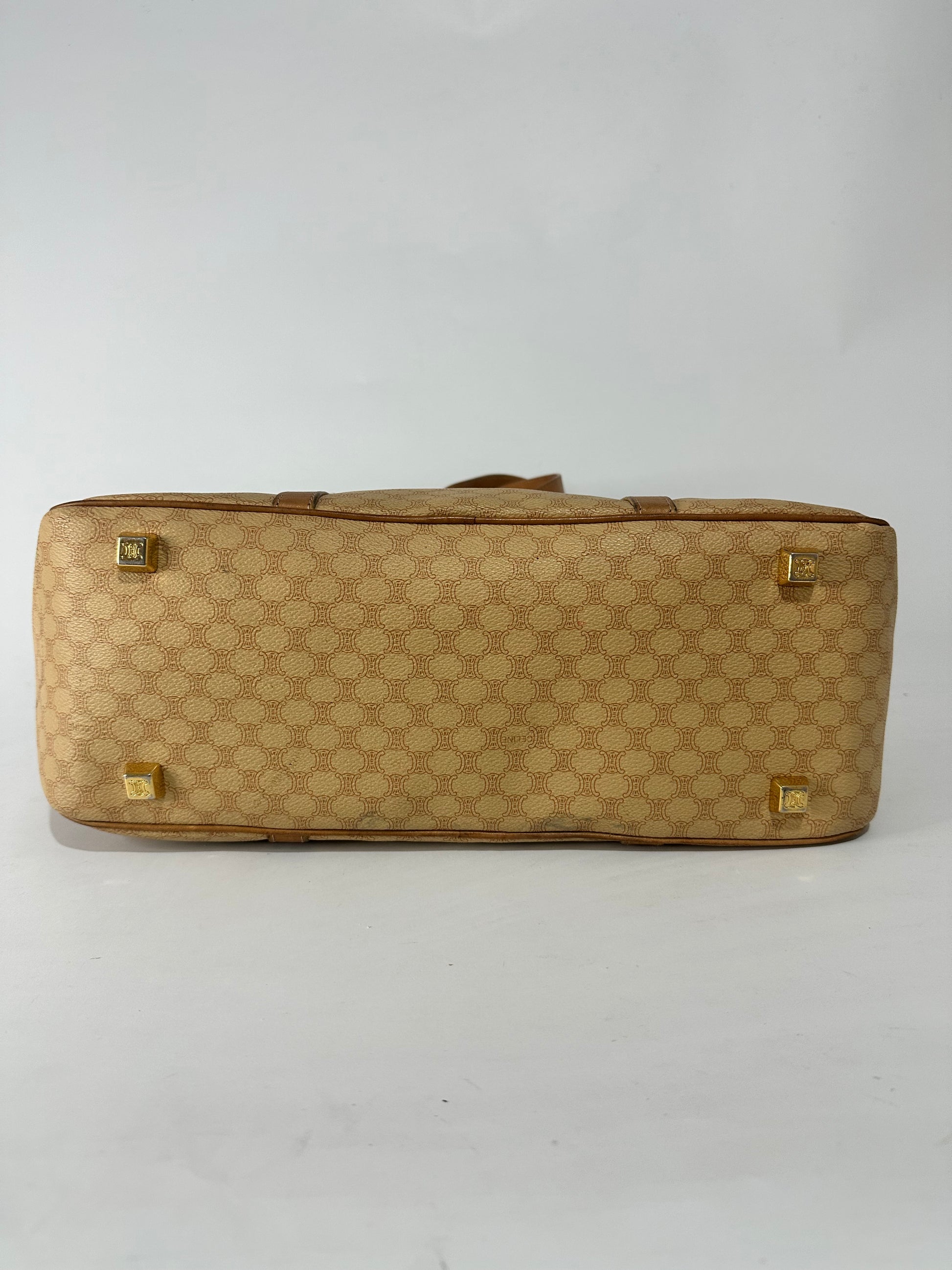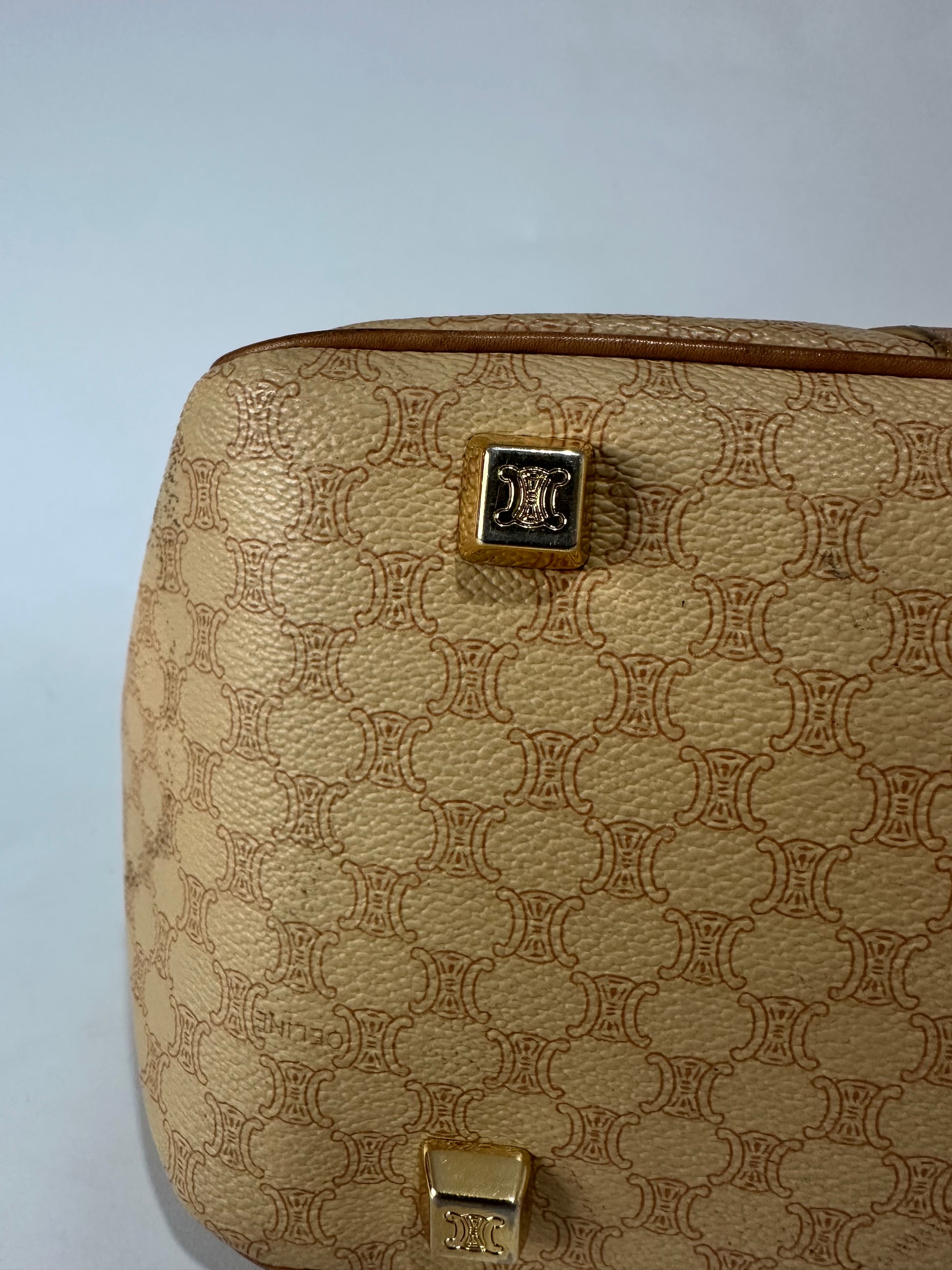 Vintage Celine Macadam Coated Canvas Boston Shoulder Bag – Tan/Brown – Made in Italy