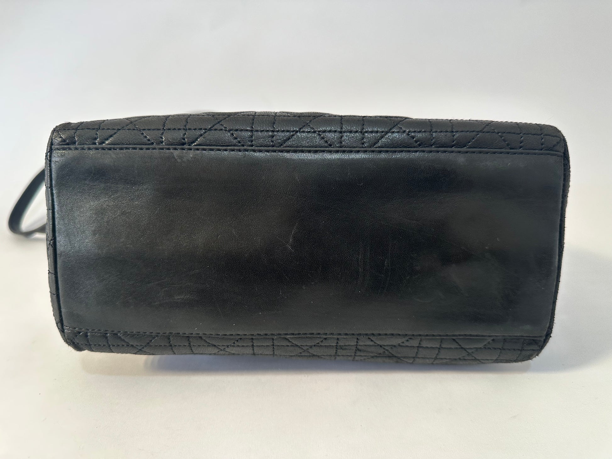 VintageDior Black Cannage Leather Medium Lady Dior Tote