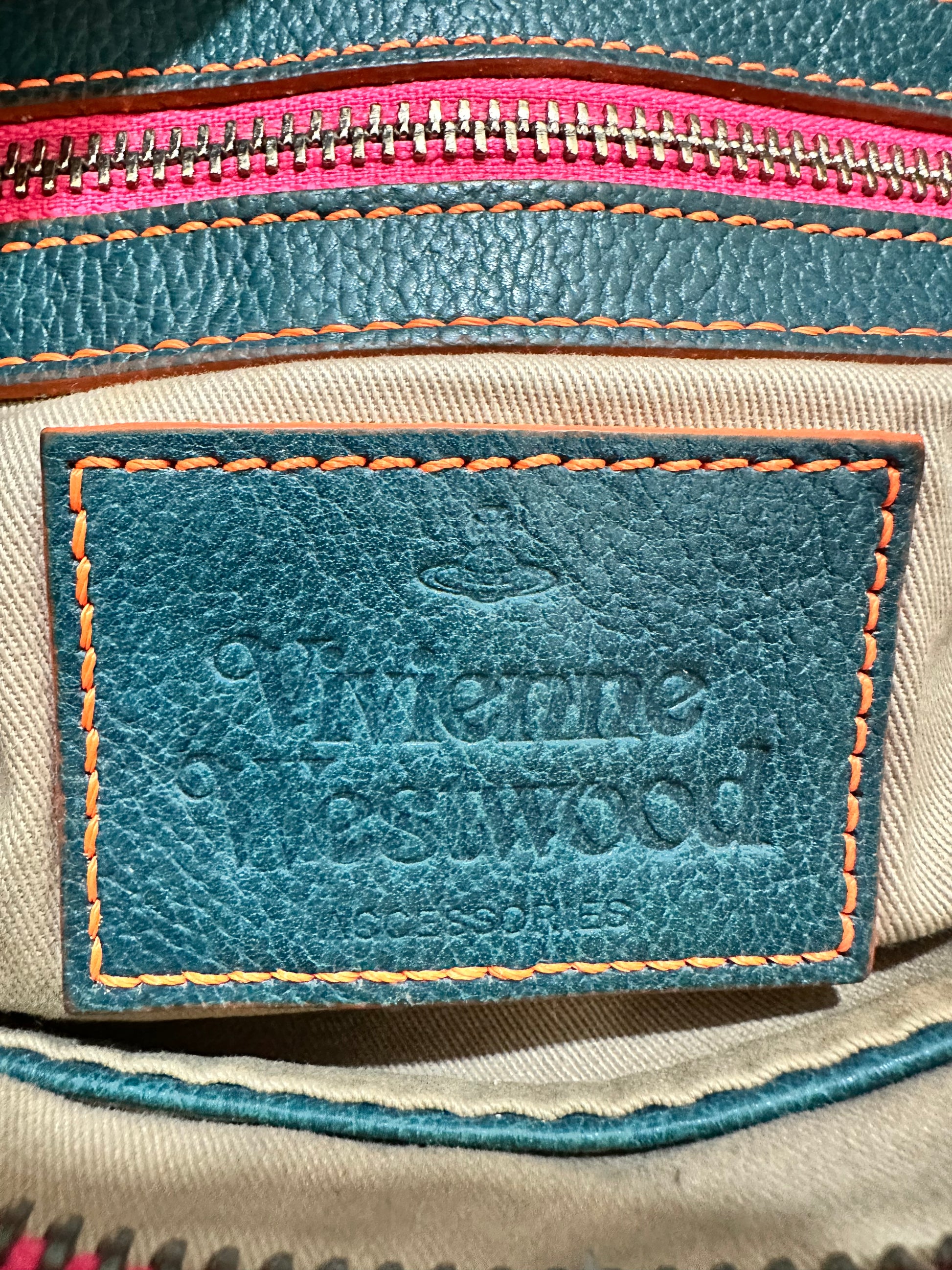 Expertly crafted by Vivienne Westwood, this crossbody bag features a single shoulder strap and flap closure, both adorned with silver-tone hardware. The sleek black leather exterior is complemented by a durable nylon lining and a convenient interior pocket.